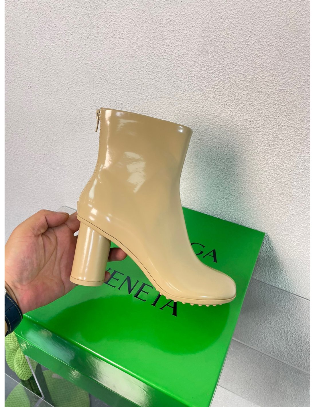 Cheap Reps Bottega Veneta Atomic Ankle Boots In Beige Lambskin