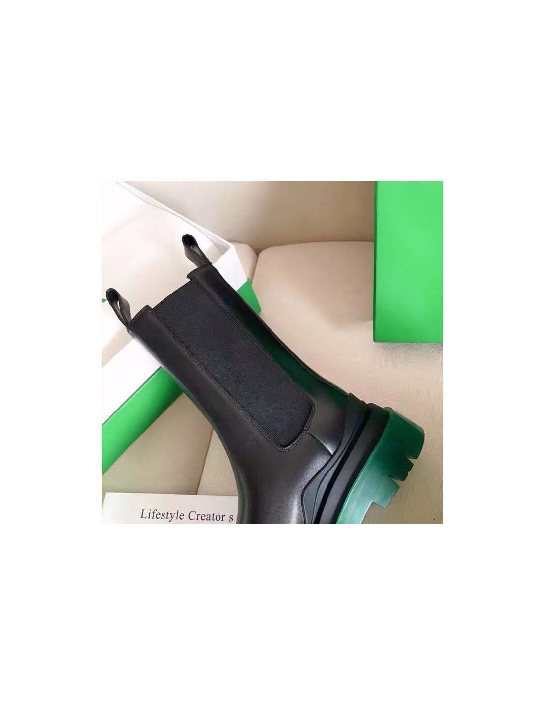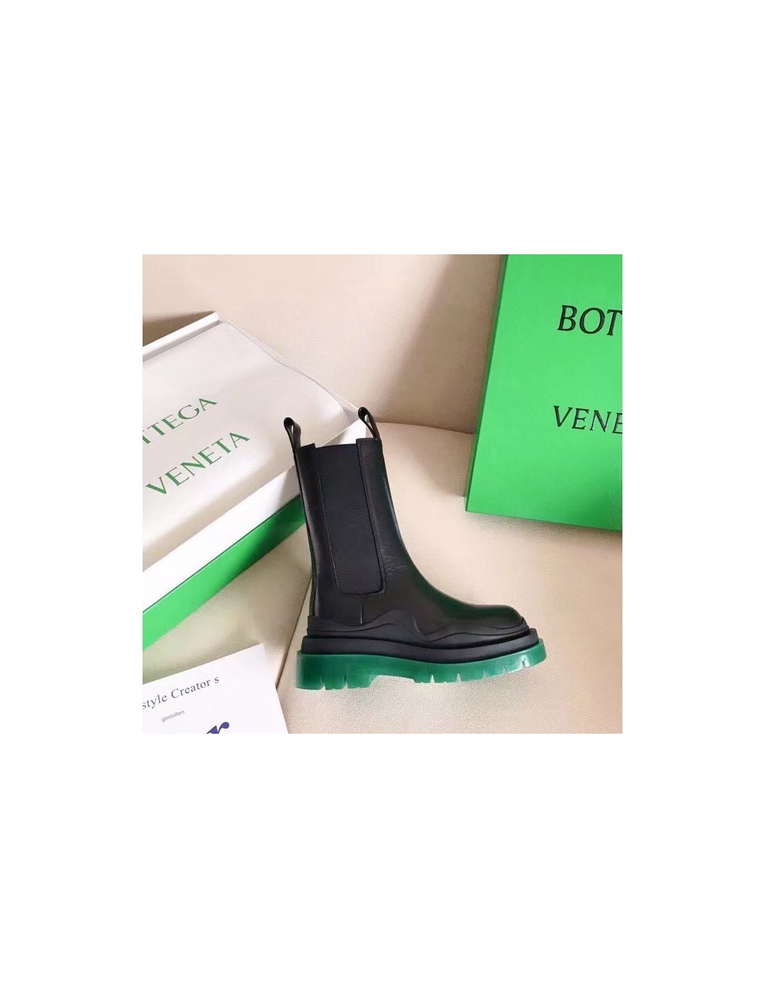 Bottega Veneta BV Tire Chelsea Boots with Green Outsole
