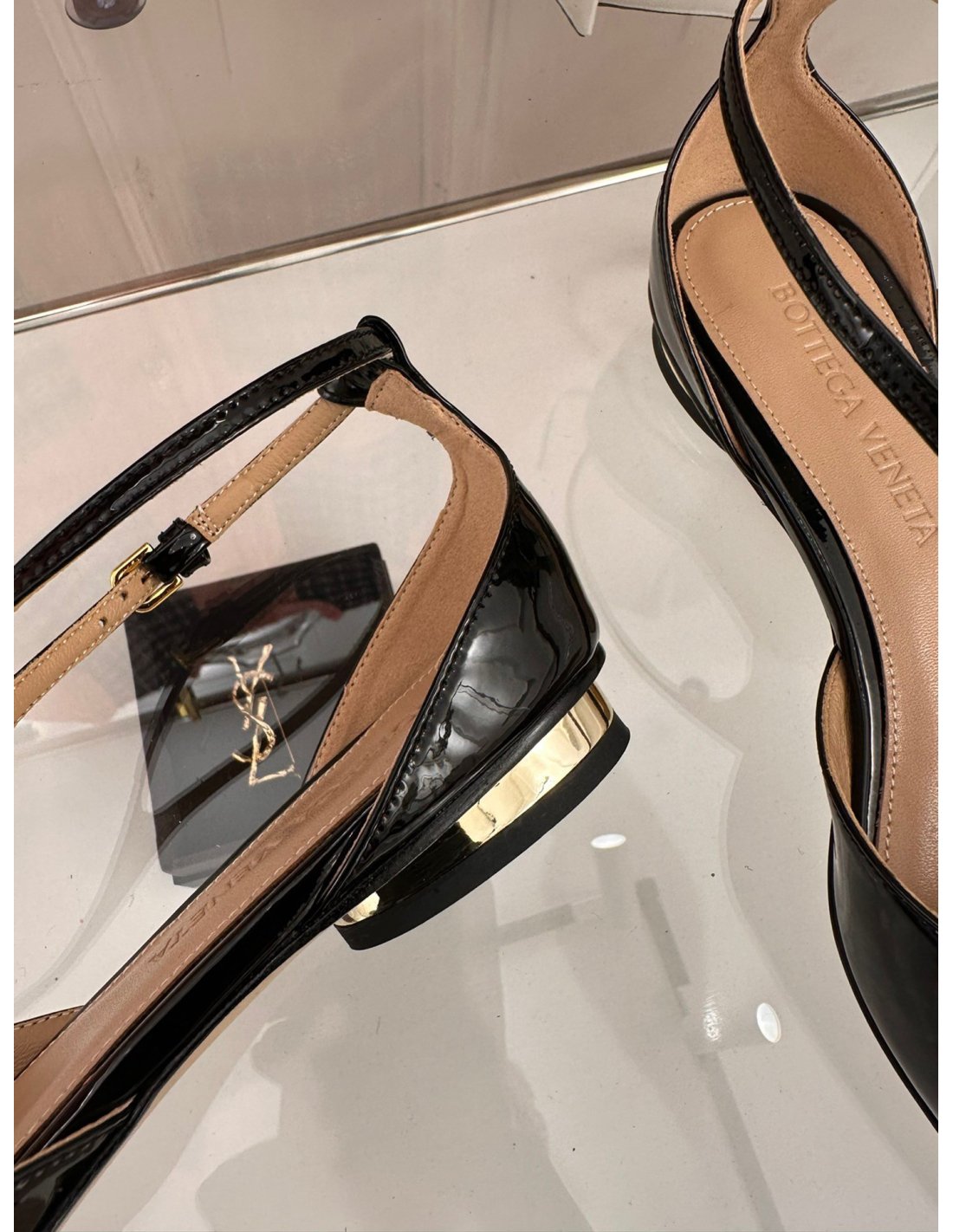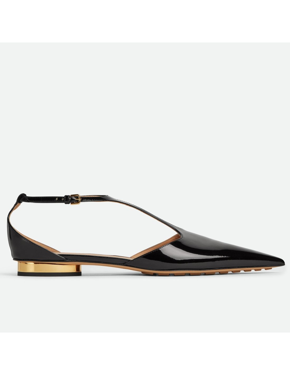 Bottega Veneta Rocket T-Bar Ballerina Flats In Black Patent Leather