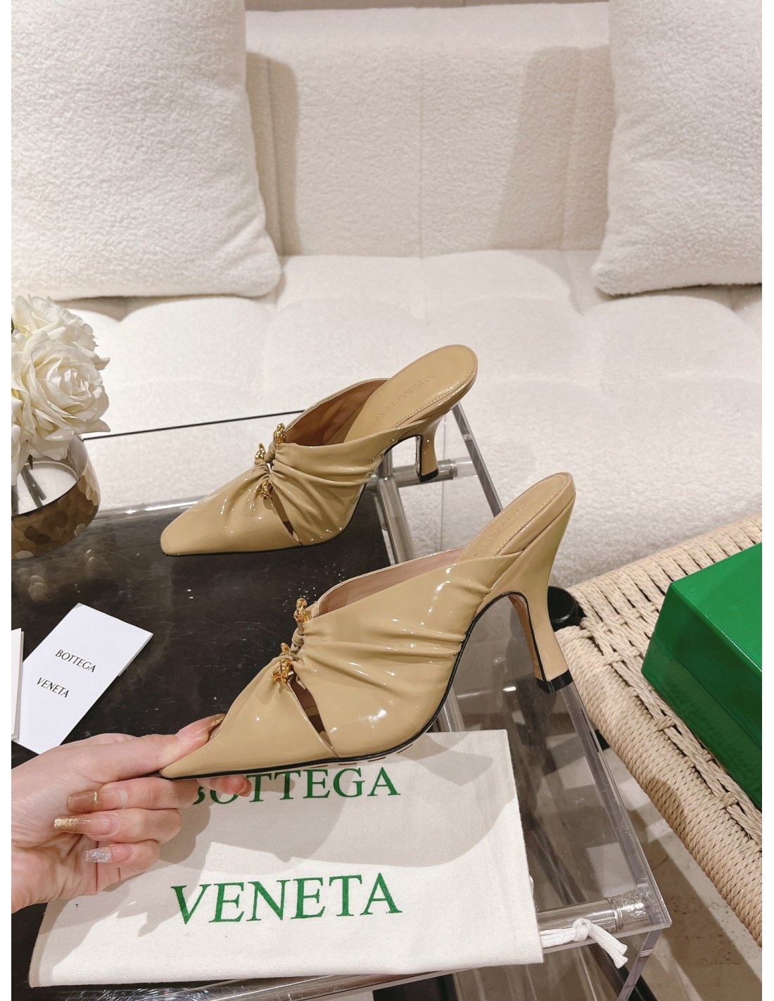 Bottega Veneta Bunnie Mules 90mm In Beige Patent Leather