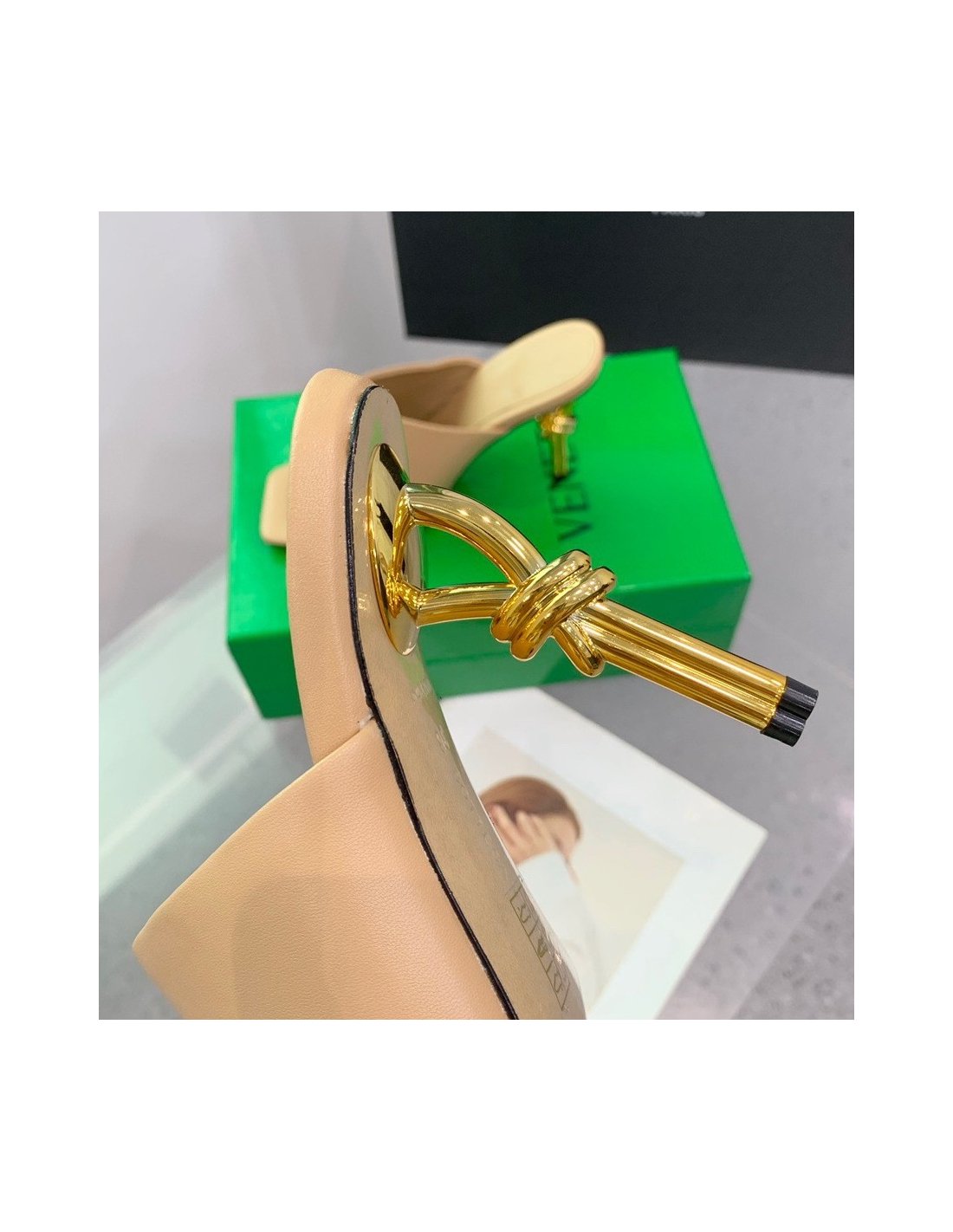 Matthieu Blazy burst on the scene to show that Bottega Veneta is once again the brand to turn to for cult-worthy accessories, perfectly expressed by the Knot mules. Balancing the brands preference for minimalistic silhouettes, the sleek leather upper is equalised by the gold-tone sculptural heel in the shape of an overhand knot.