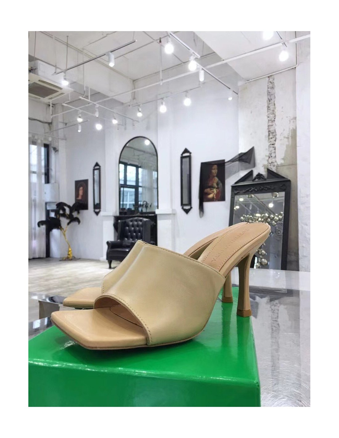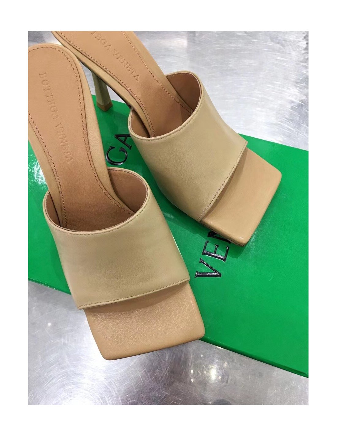 Cheap Reps Bottega Veneta Stretch Mules 90mm In Beige Lambskin