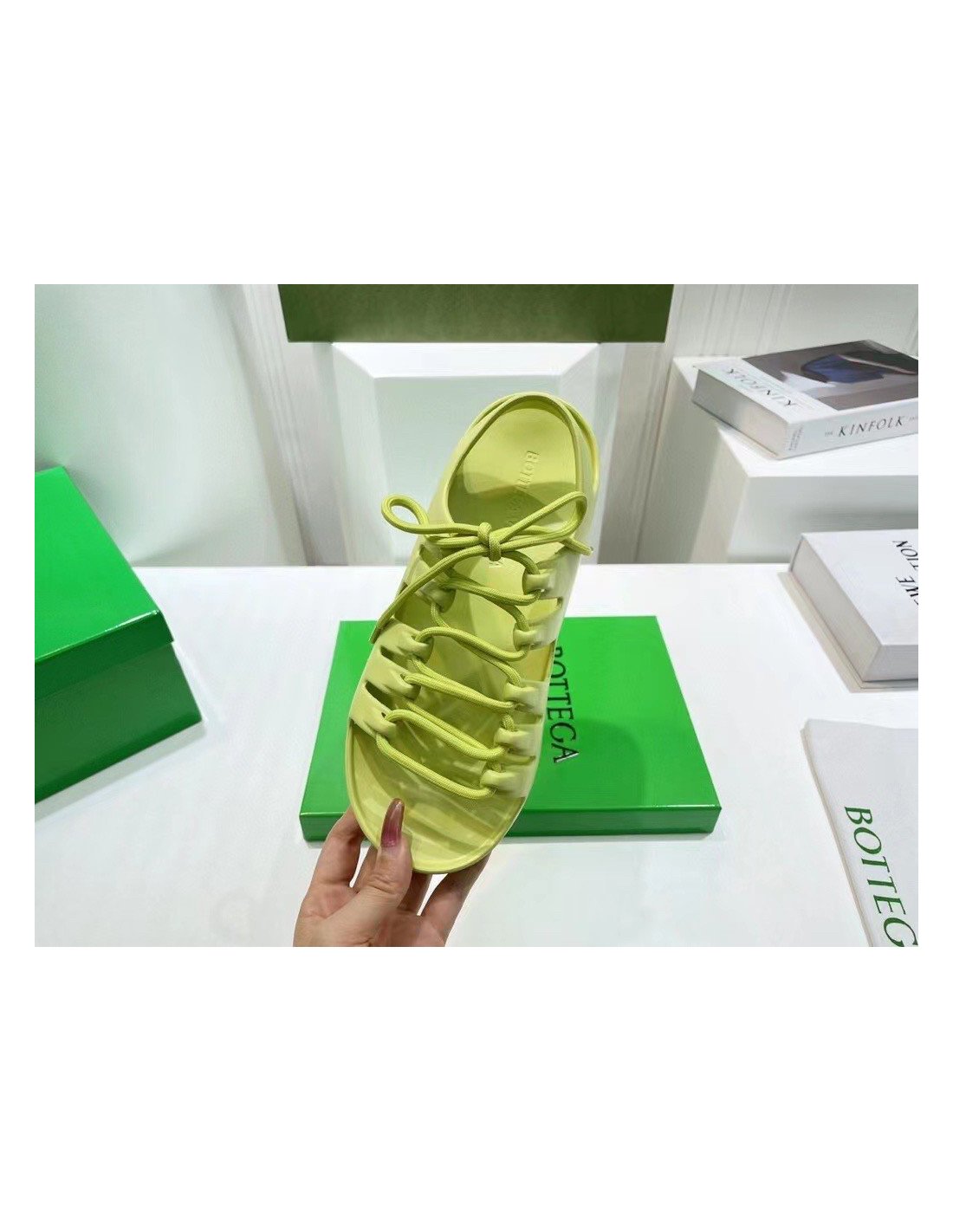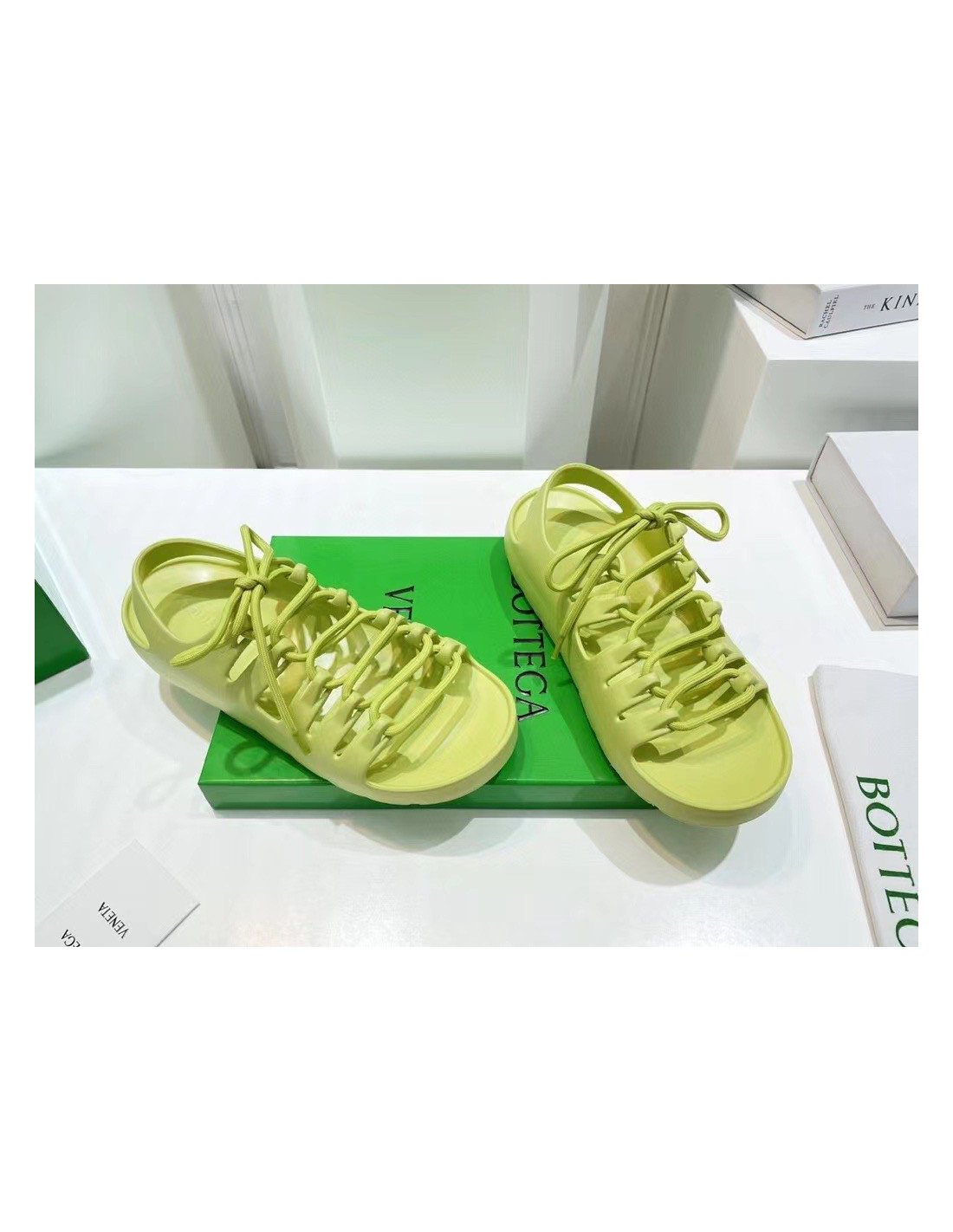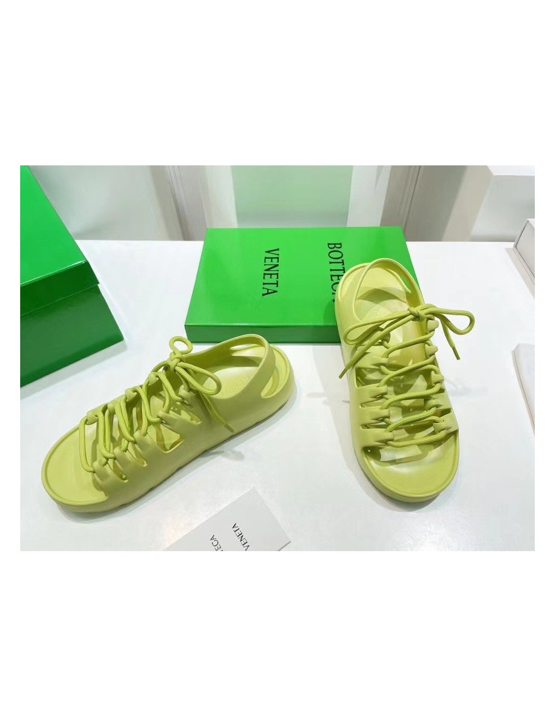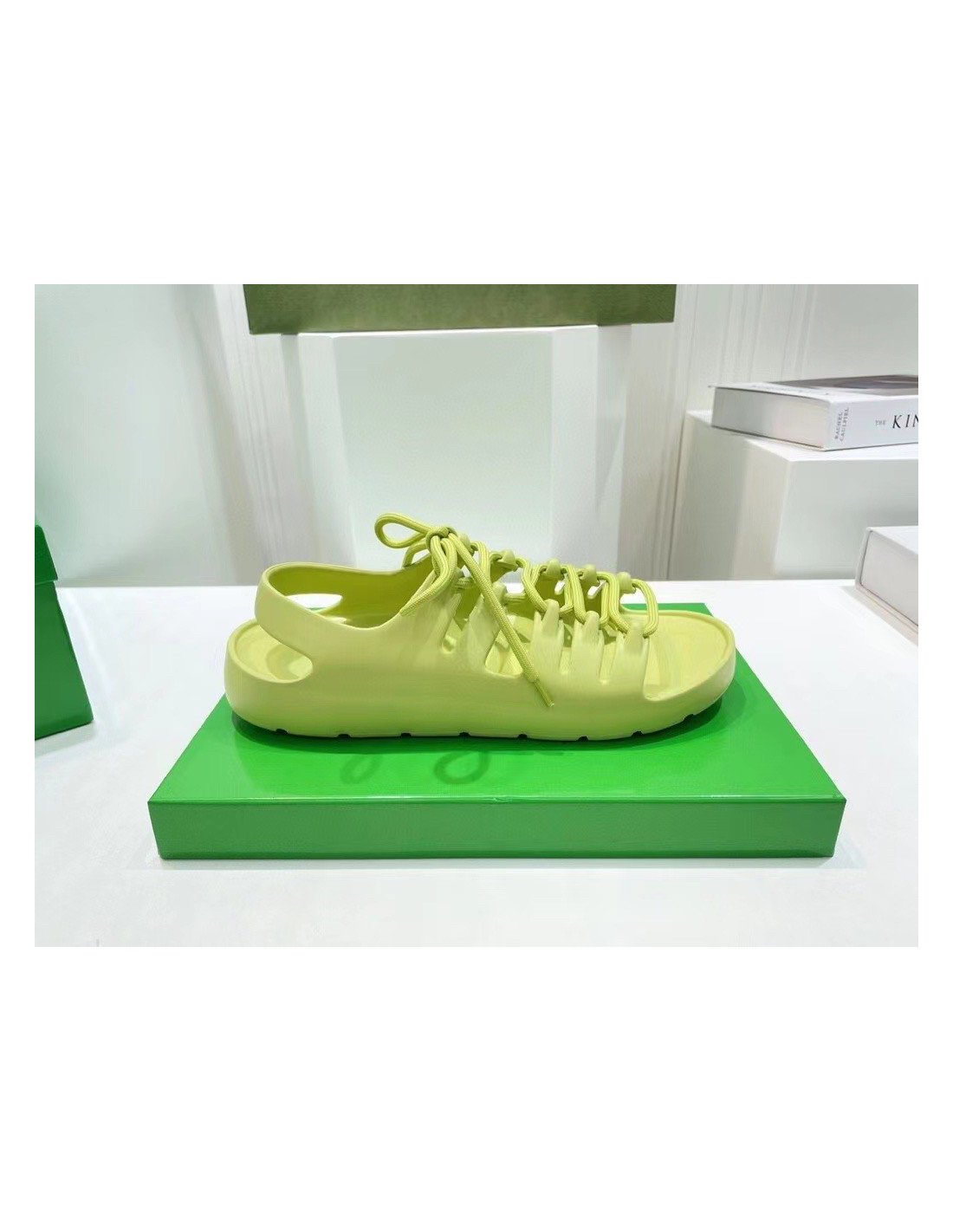 Although a clear departure from the labels signature formula and aesthetic, the Jelly sandals are still undoubtedly a creation of Bottega Veneta. Crafted from durable rubber in a seamless construction, the pair sits atop a flatform sole and is detailed with laces to the upper that intertwine between the cut-out panels ¨C a nod to the labels iconic Intrecciato weave.