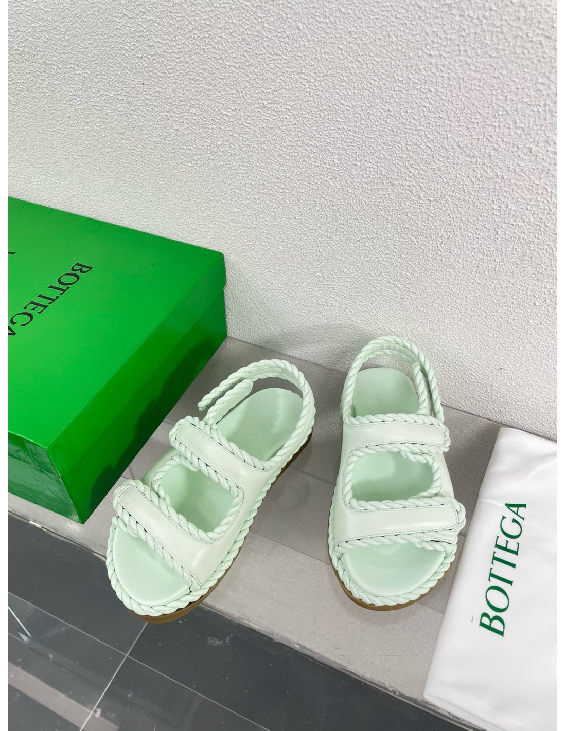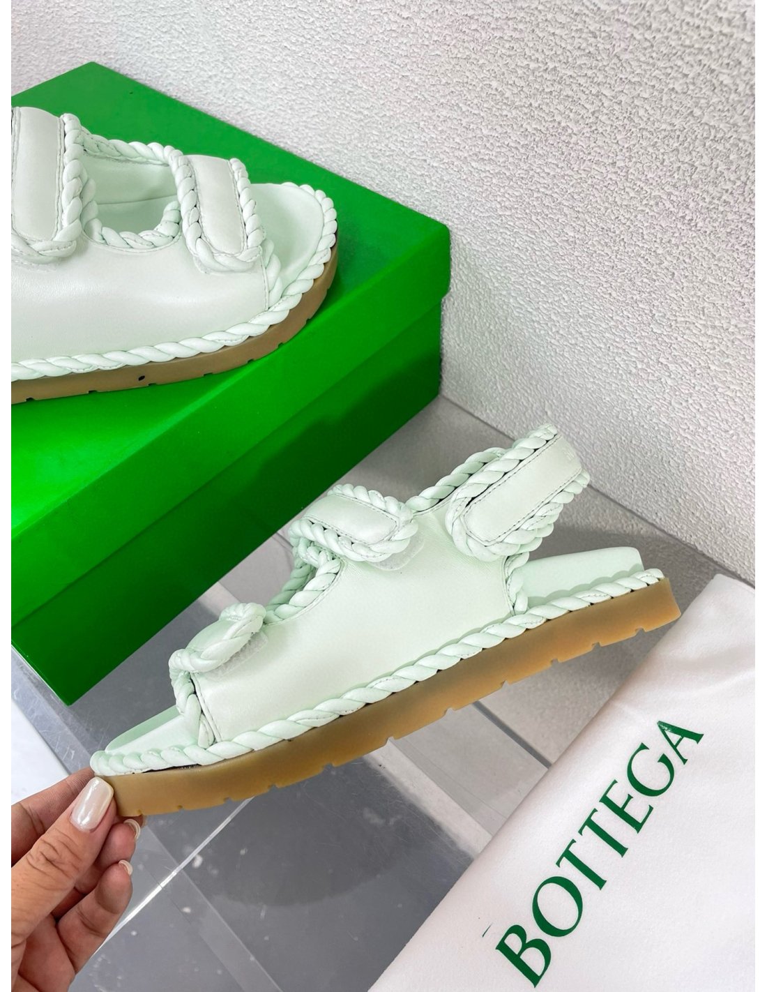 Bottega Veneta Lido Sandals In Green Intrecciato Leather