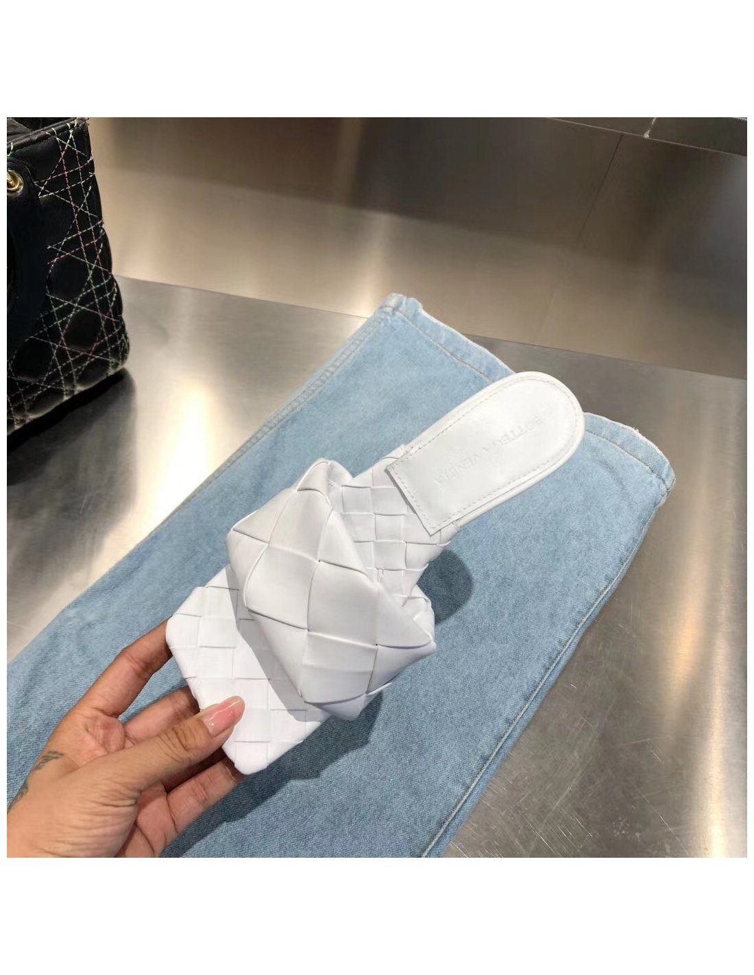Cheap Reps Bottega Veneta Lido Sandals In White Intrecciato Leather