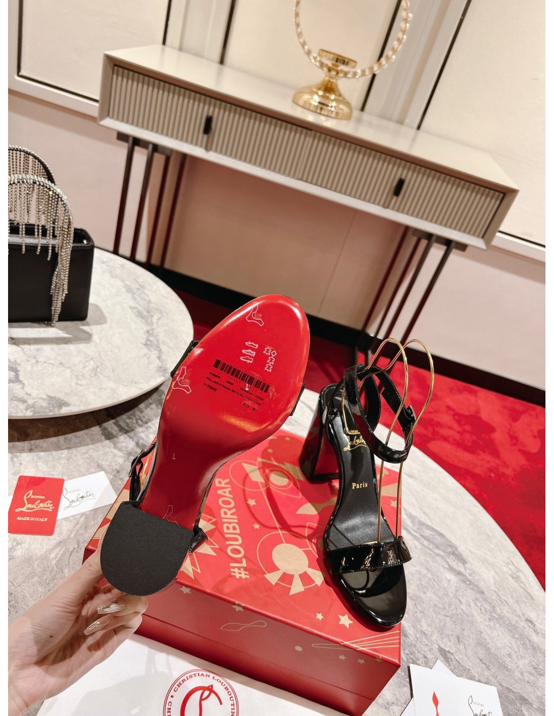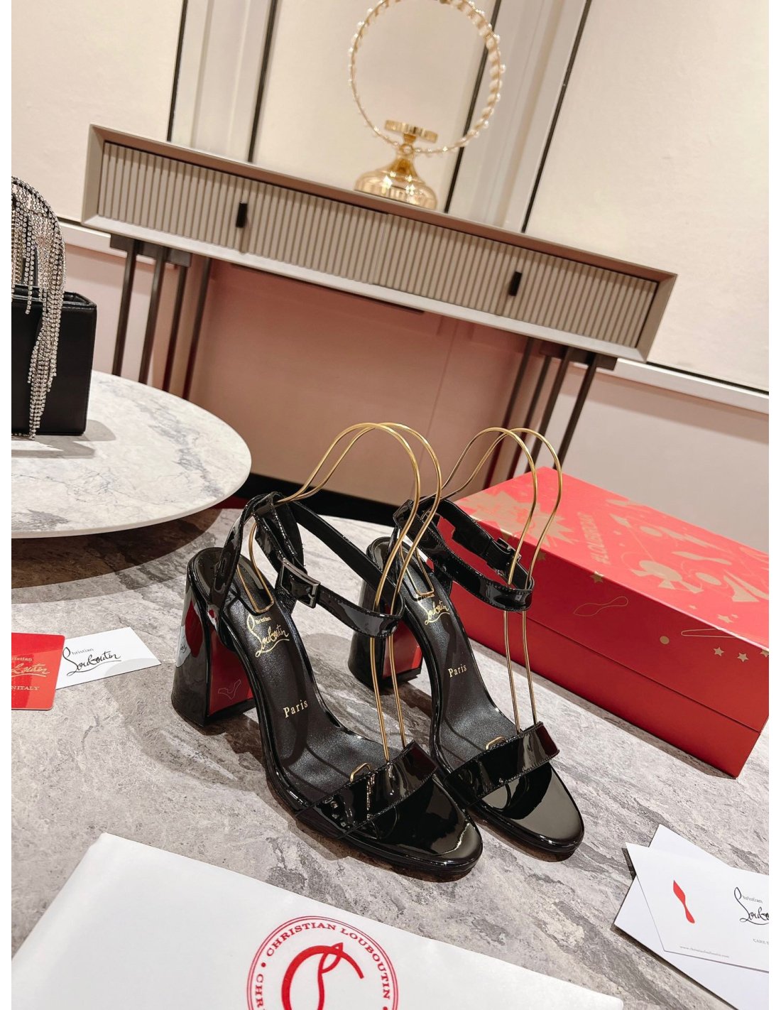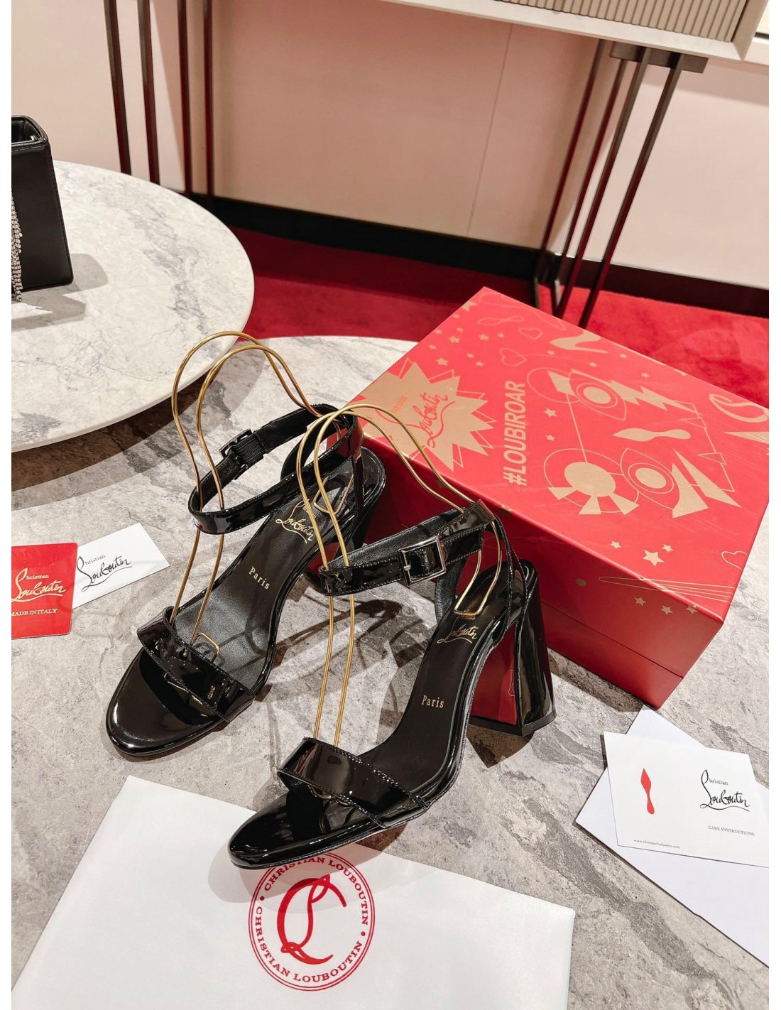 Christian Louboutin Miss Sabina 85MM Sandals In Black Patent Leather
