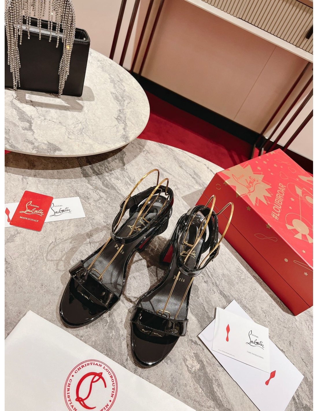 A summery model with sleek lines, the Miss Sabina sandal features an 85 mm asymmetrical heel. The straps cross behind the ankles and are adorned with delicate square clasps. Entirely crafted in patent calf leather with discreet topstitching, it showcases Maison Christian Louboutin's creativity and expertise.