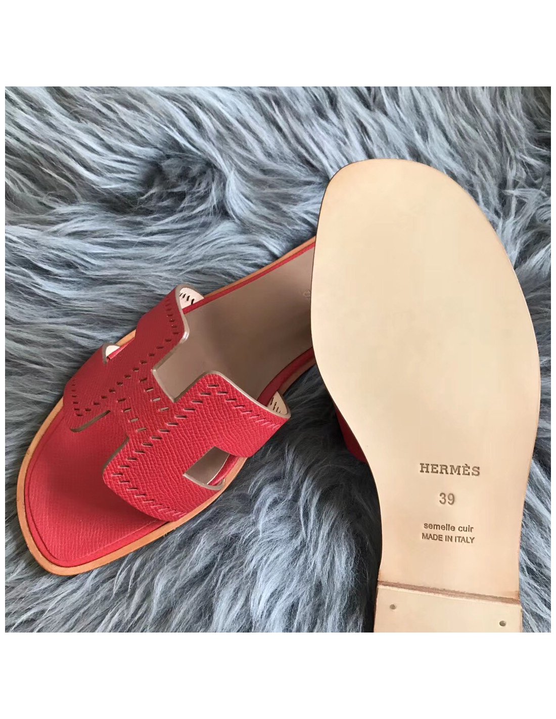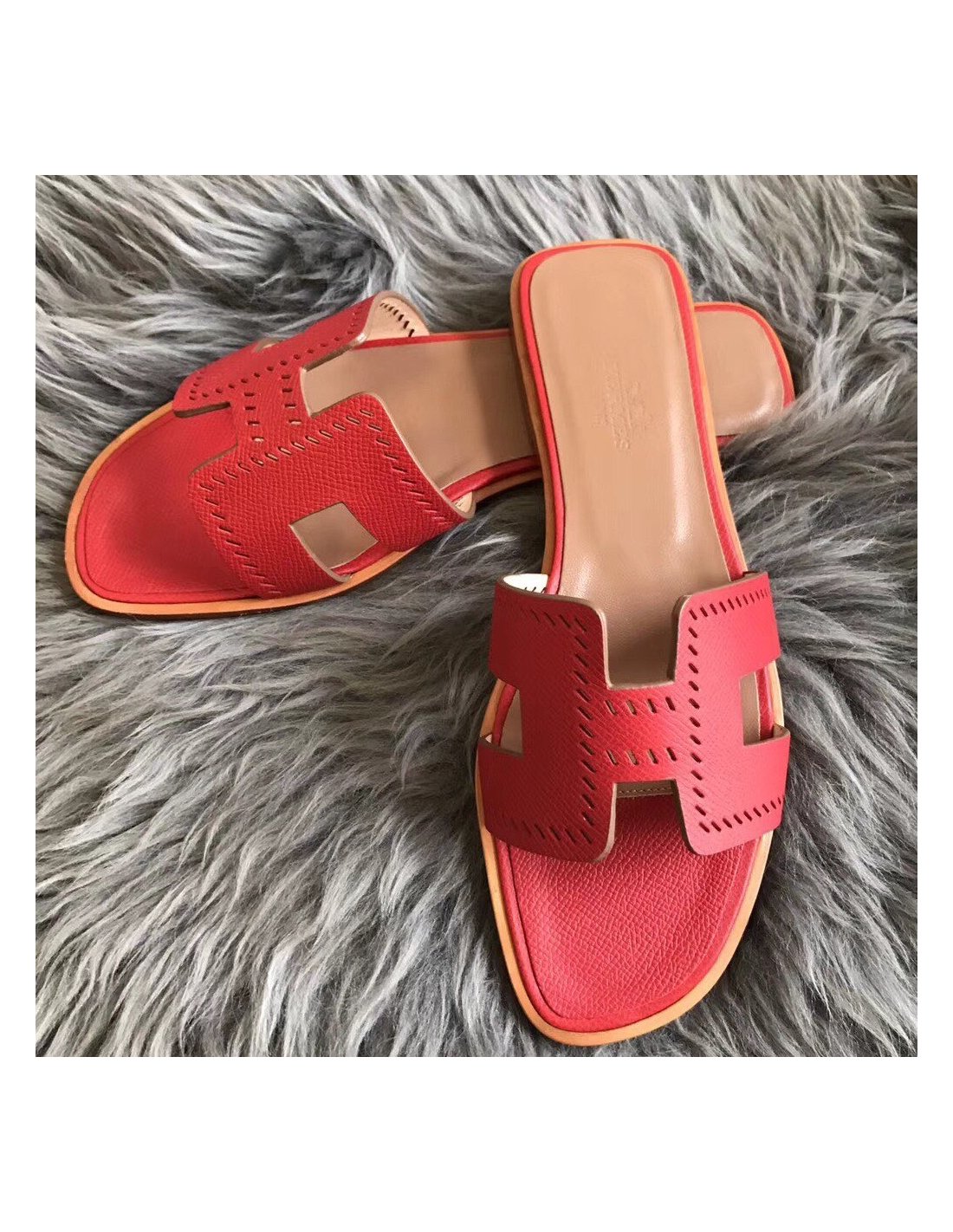 Cheap Reps Hermes Oran Slide Sandals In Red Epsom Perforated Calfskin