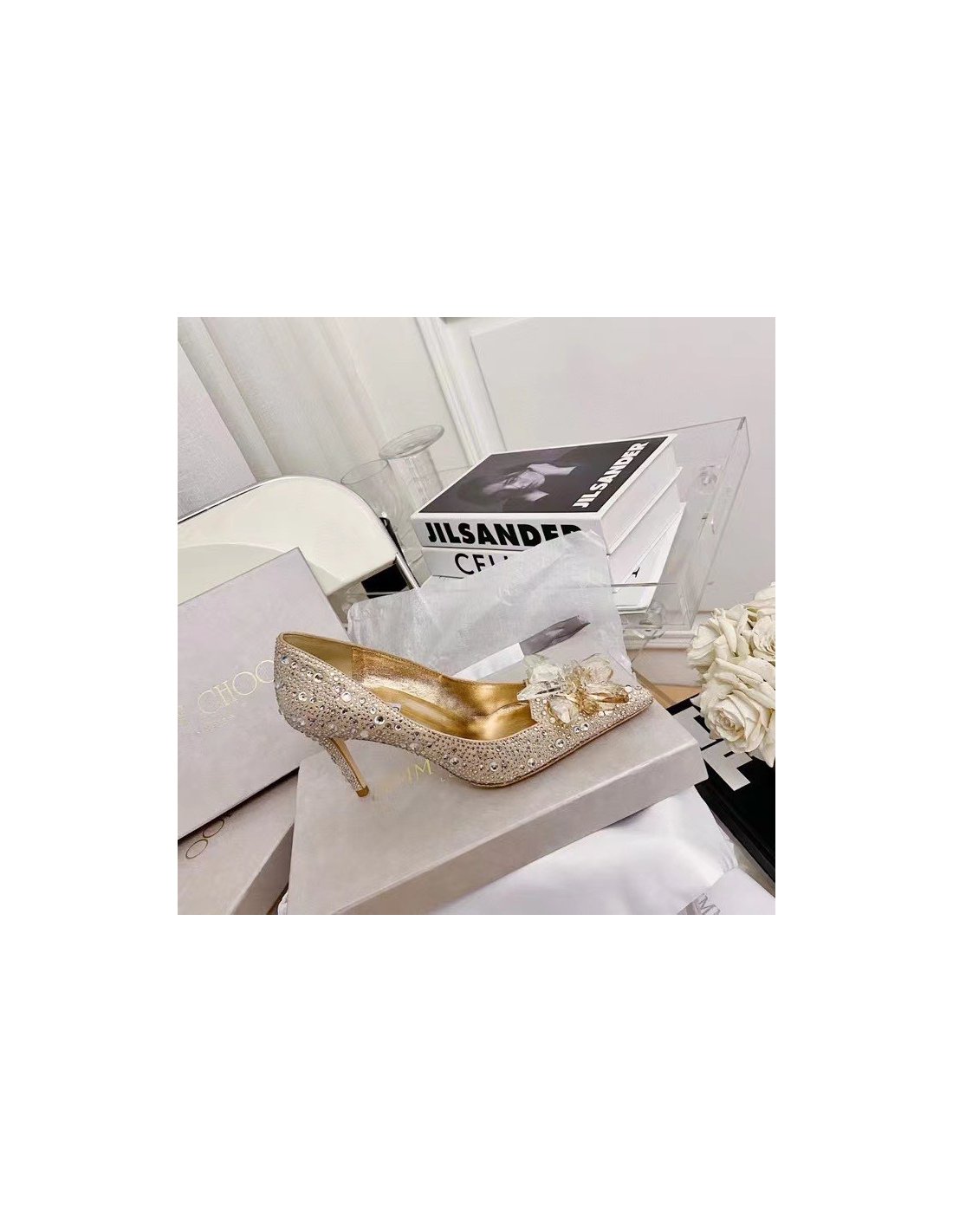 Jimmy Choo Avril 100mm Pumps In Gold Crystal