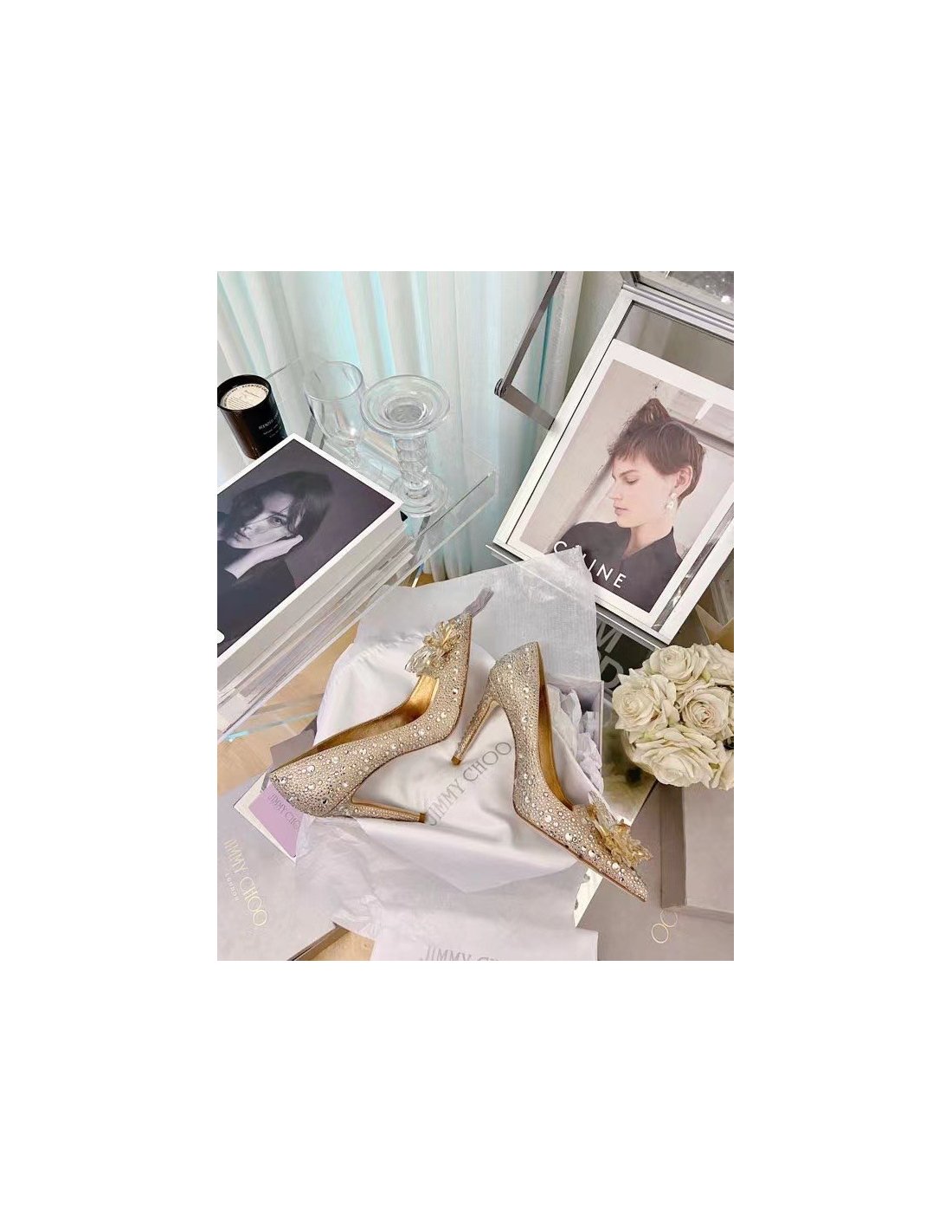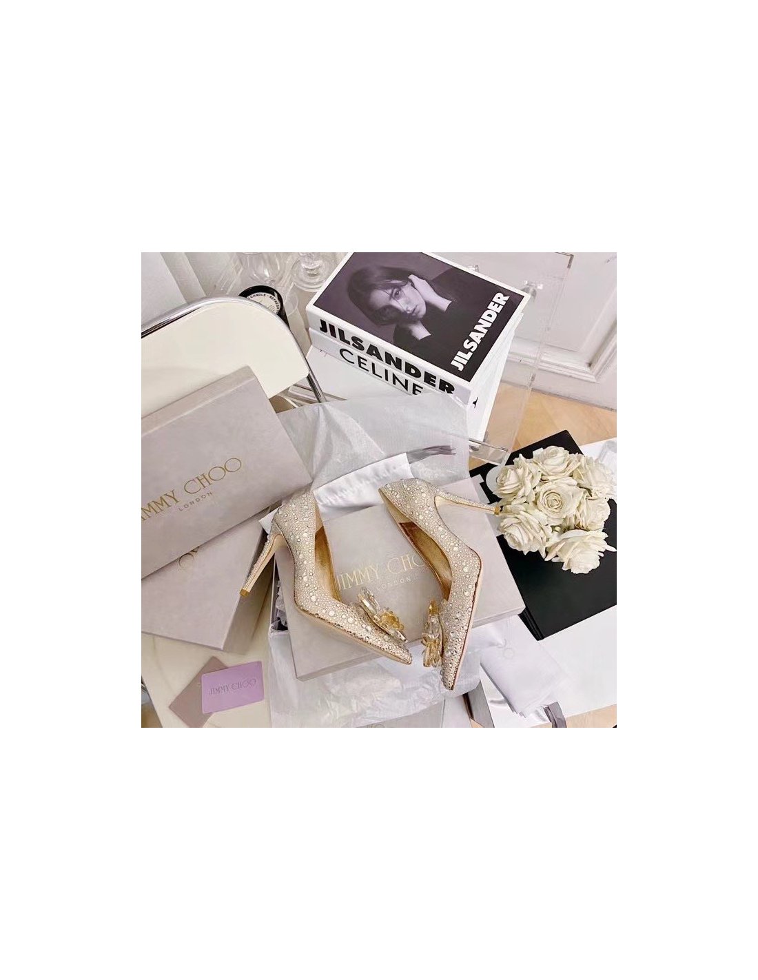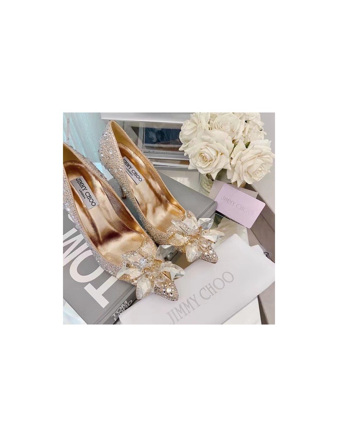 Jimmy Choo Alia 85mm Pumps In Gold Crystal