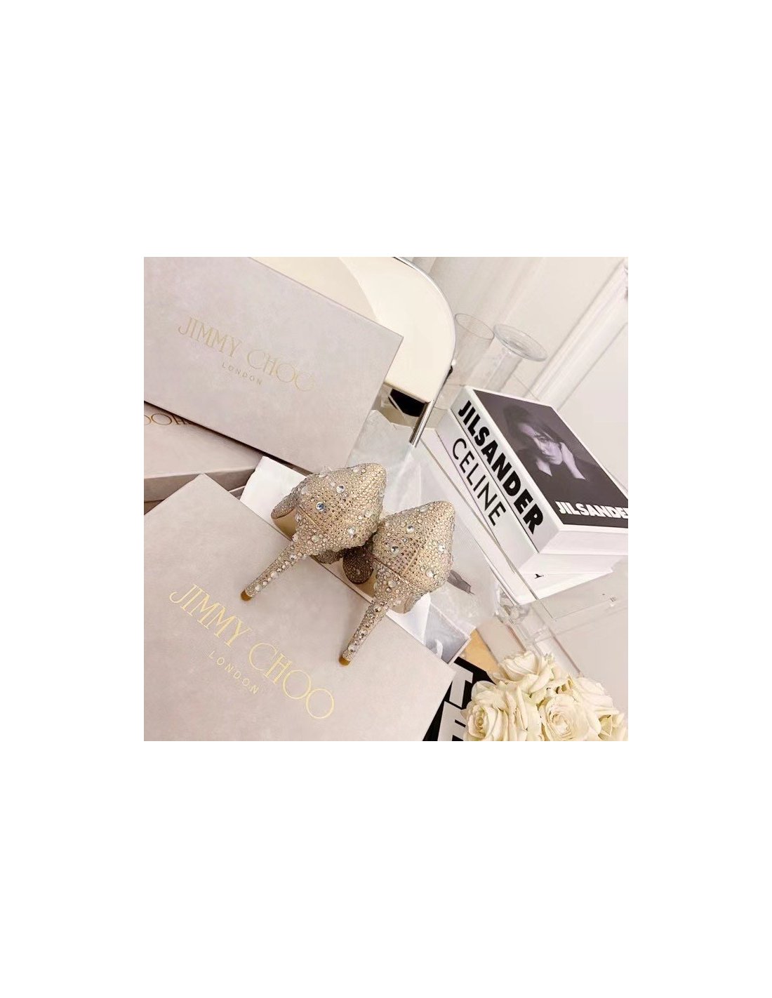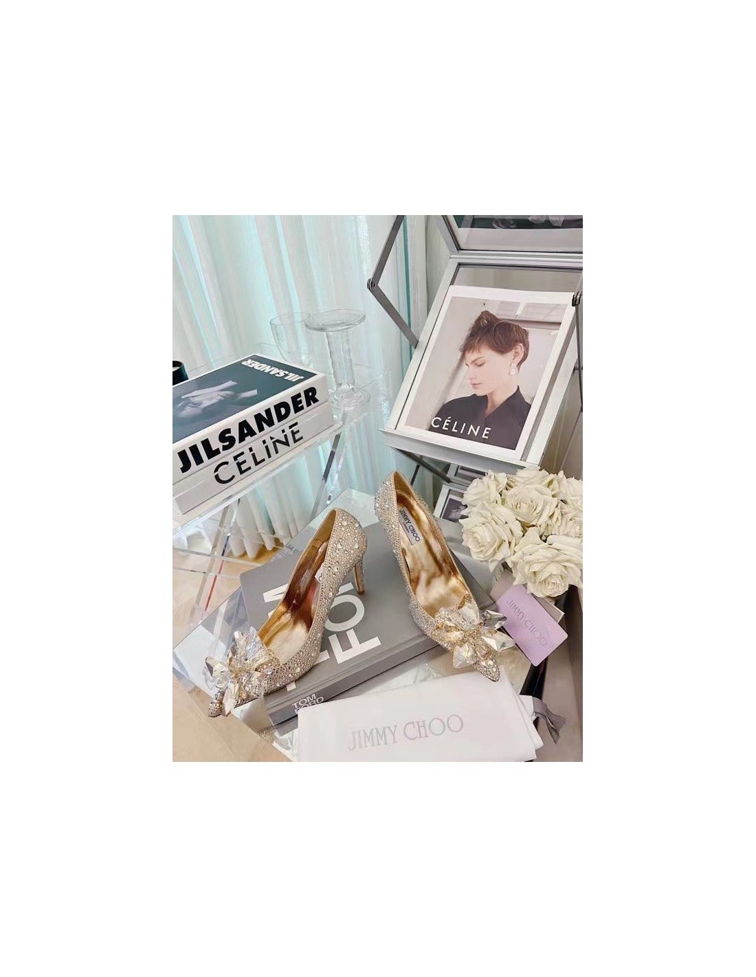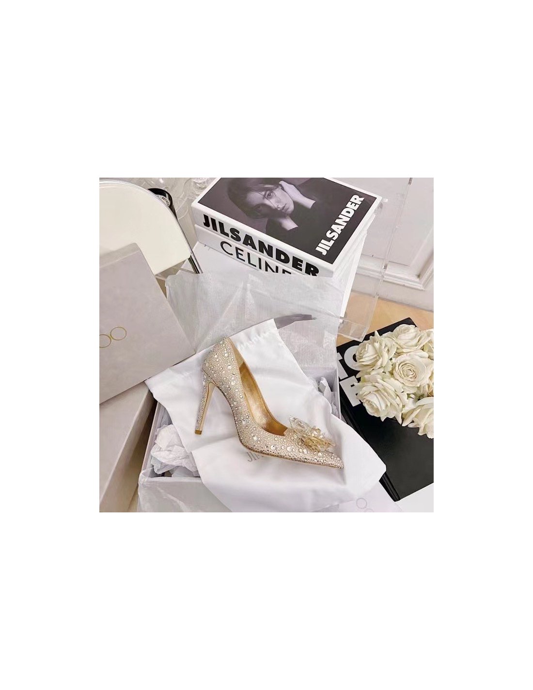 Jimmy Choo Alia 85mm Pumps In Gold Crystal