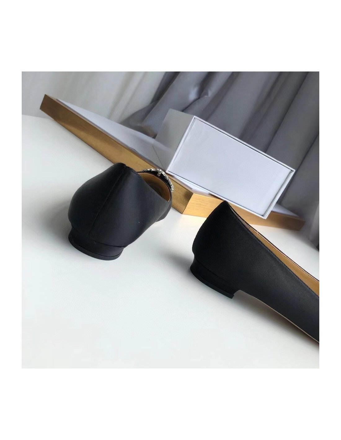 Manolo Blahnik Hangisi Flats In Black Satin with Crystal Buckle