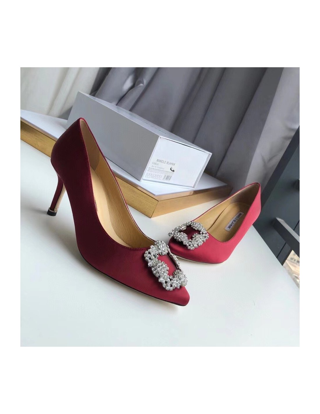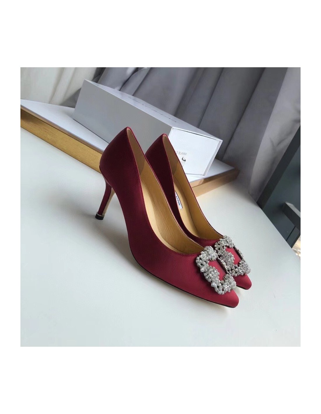Cheap Reps Manolo Blahnik Hangisi 70 Pumps In Bordeaux Satin