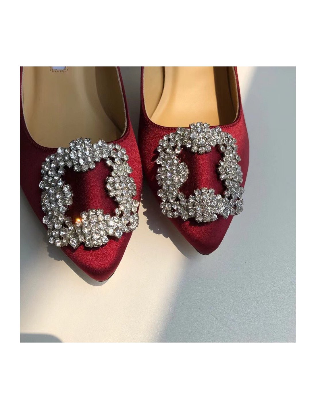 - Satin with square crystal buckle