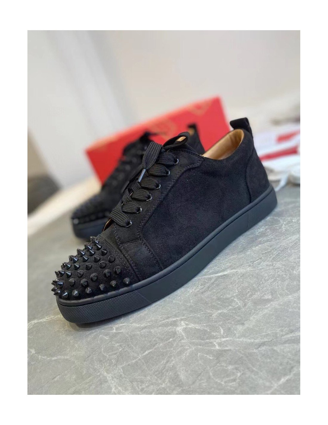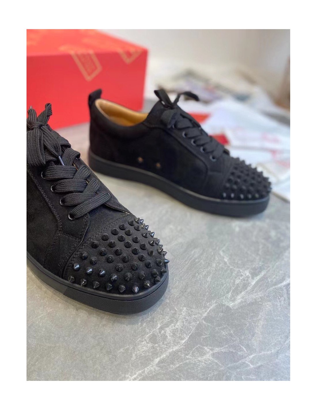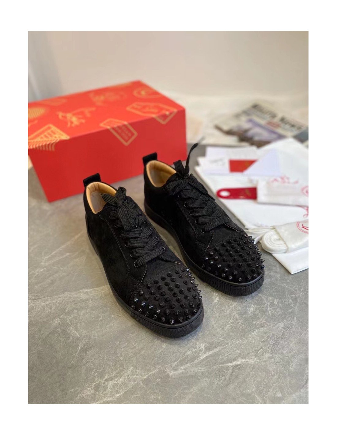 Christian Louboutin Mens Louis Junior Spikes Orlato Flat Sneakers Black