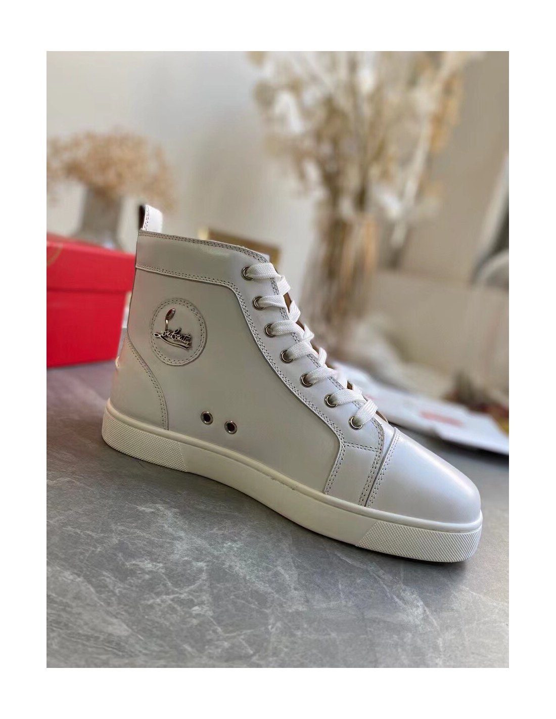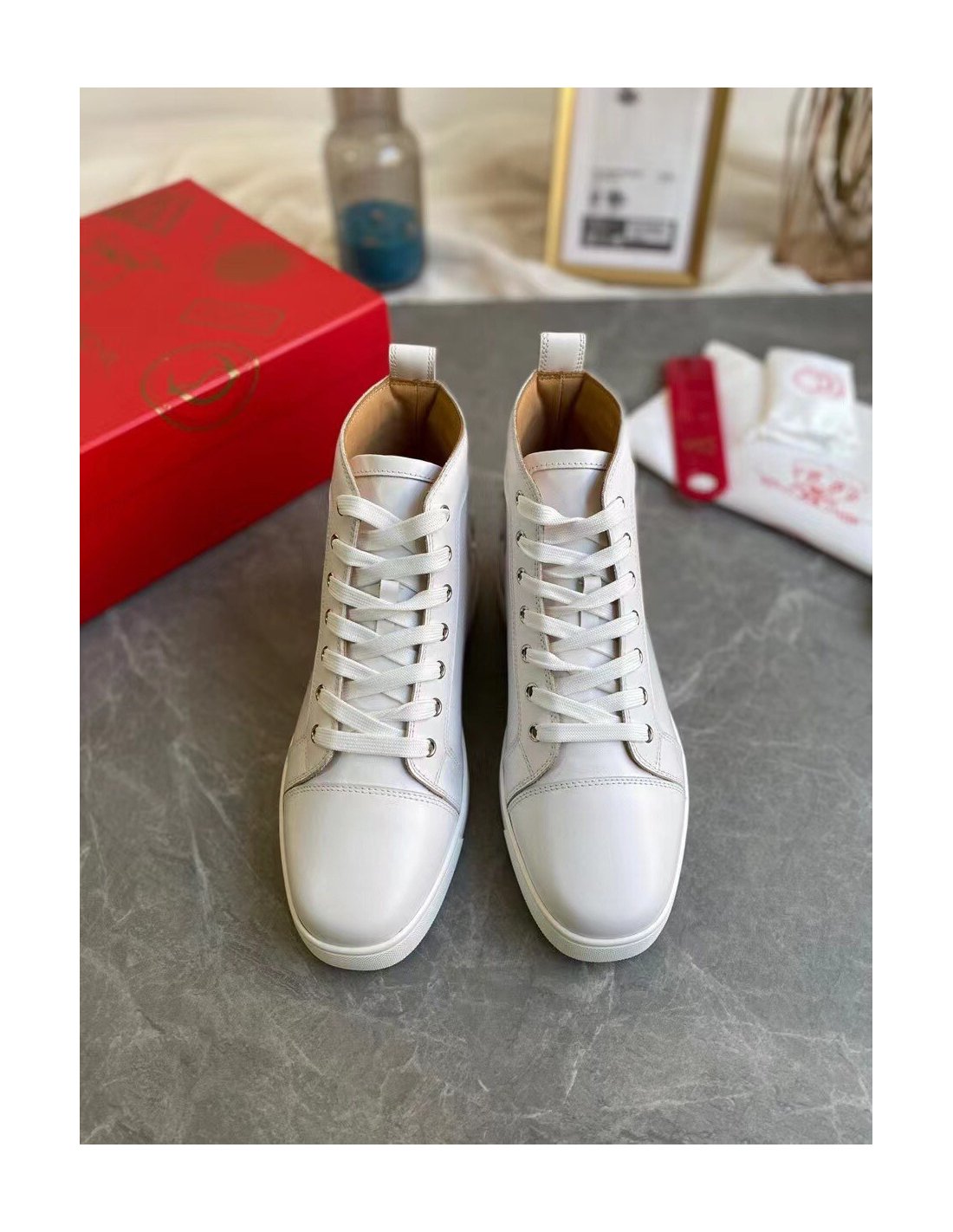 Cheap Reps Christian Louboutin Mens Louis Flat Sneakers In White Leather