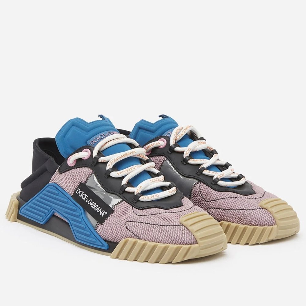 Marking a new chapter in the evolution of the brands revered Sorrento style, Dolce & Gabbana presents the subtly reimagining of the street-ready style: the NS1 sneakers. An upper consisting of elastane, mesh and calfskin is paired with a with a super-flex rubber sole to create a daring fusion of geometrical shapes and textures ¨C note the slip-on fastening for a further dimension of maximalist sophistication.