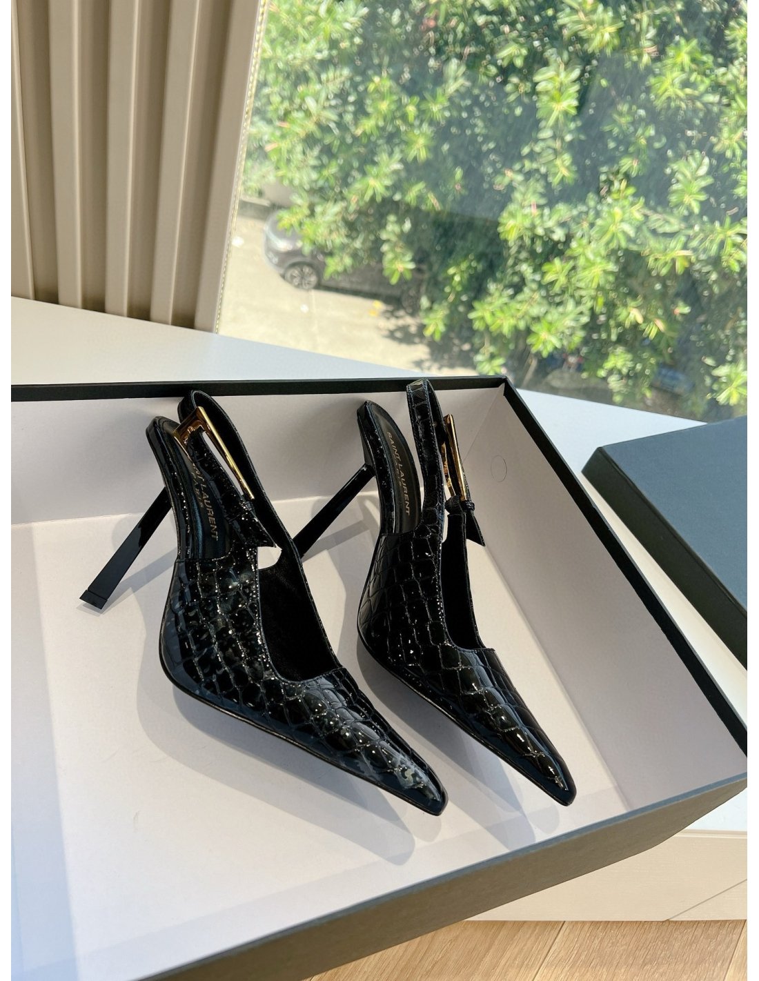 Saint Laurent Lee Slingback Pumps in Crocodile-embossed Leather