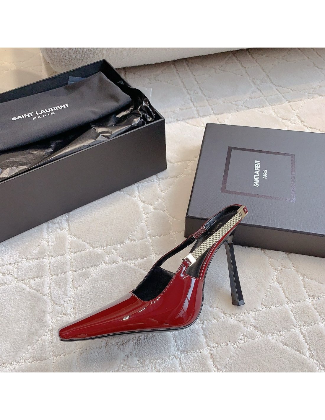 Saint Laurent Blake Slingback Pumps 110mm in Red Patent Leather