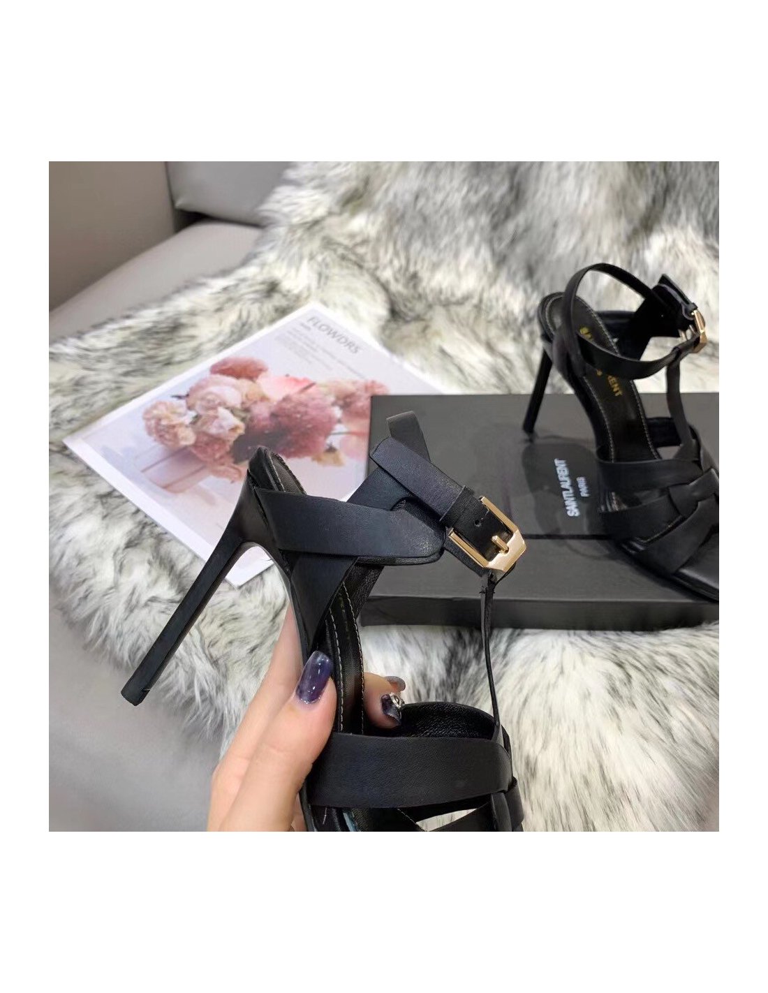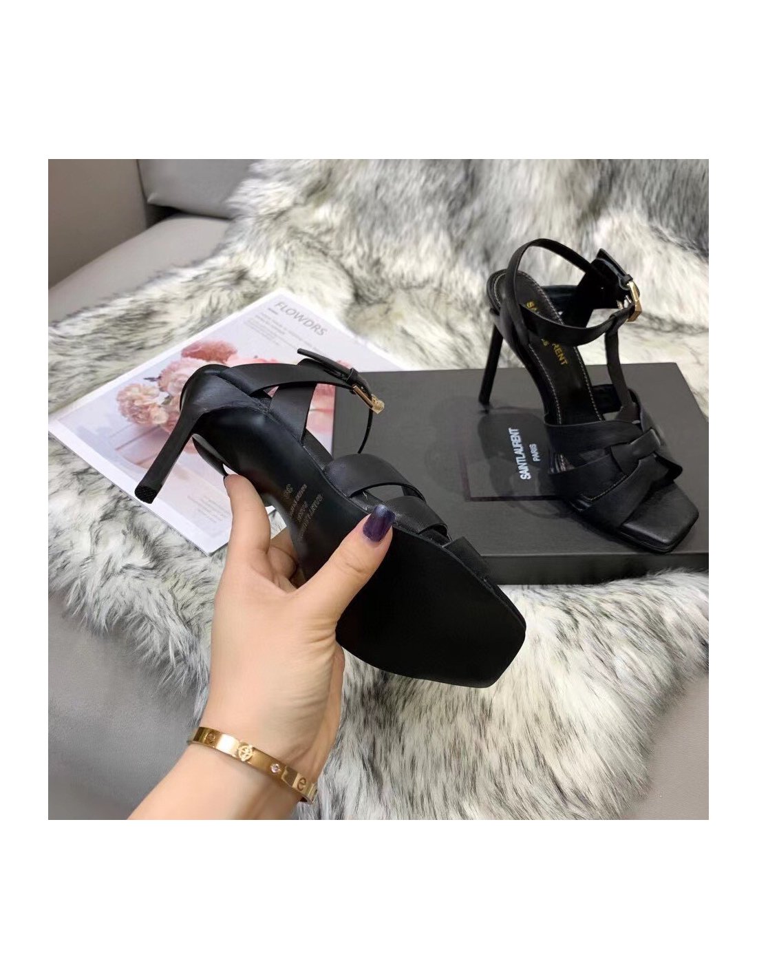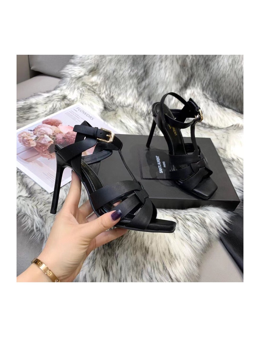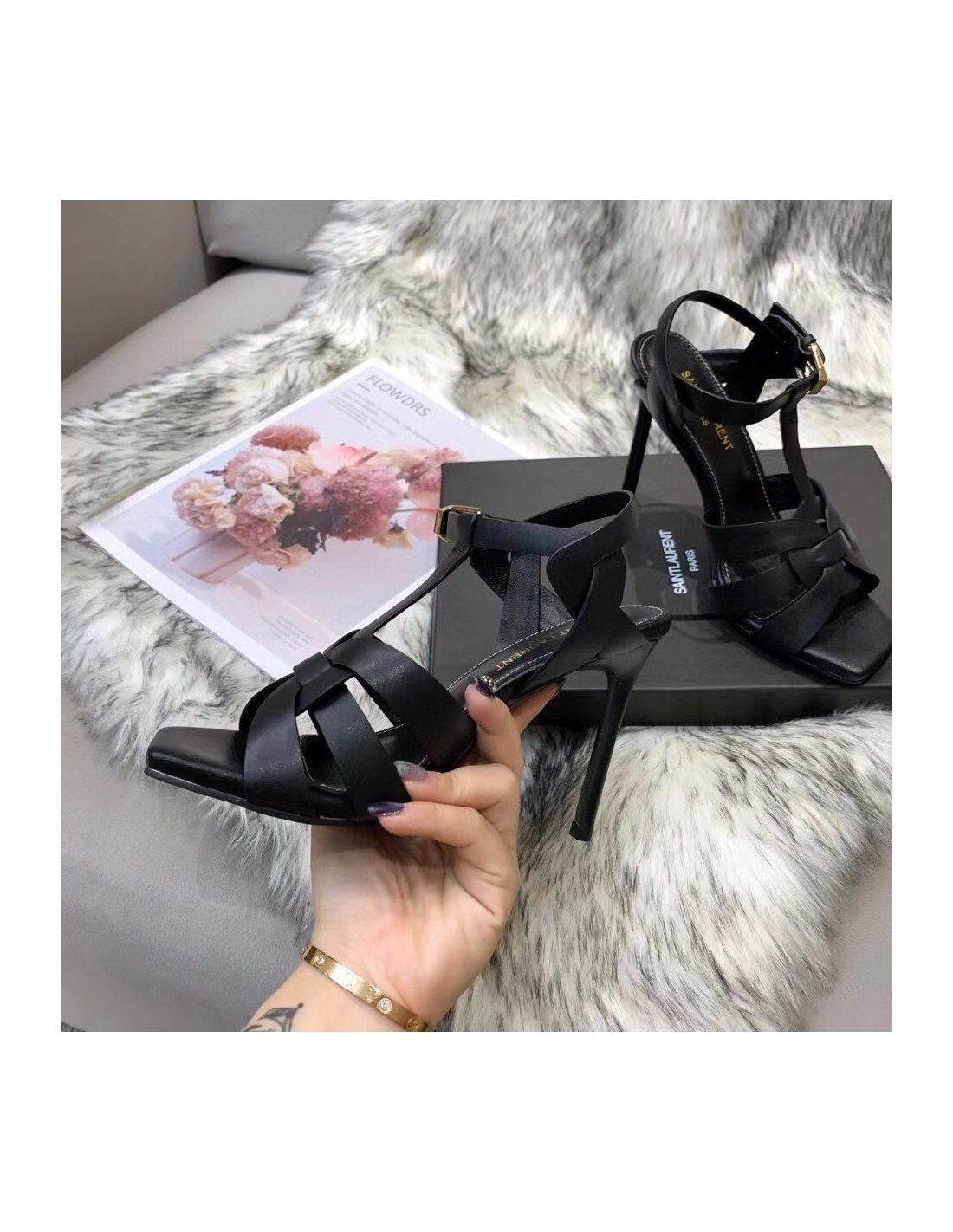 A timeless addition to your shoe portfolio, Saint Laurents signature Tribute sandals are updated with an intriguing intertwining strap for a unique touch. Crafted from smooth leather and balanced atop a towering stiletto heel for ample height, this recognisable pair promises to complement everything from distressed jeans to floor-skimming gowns.