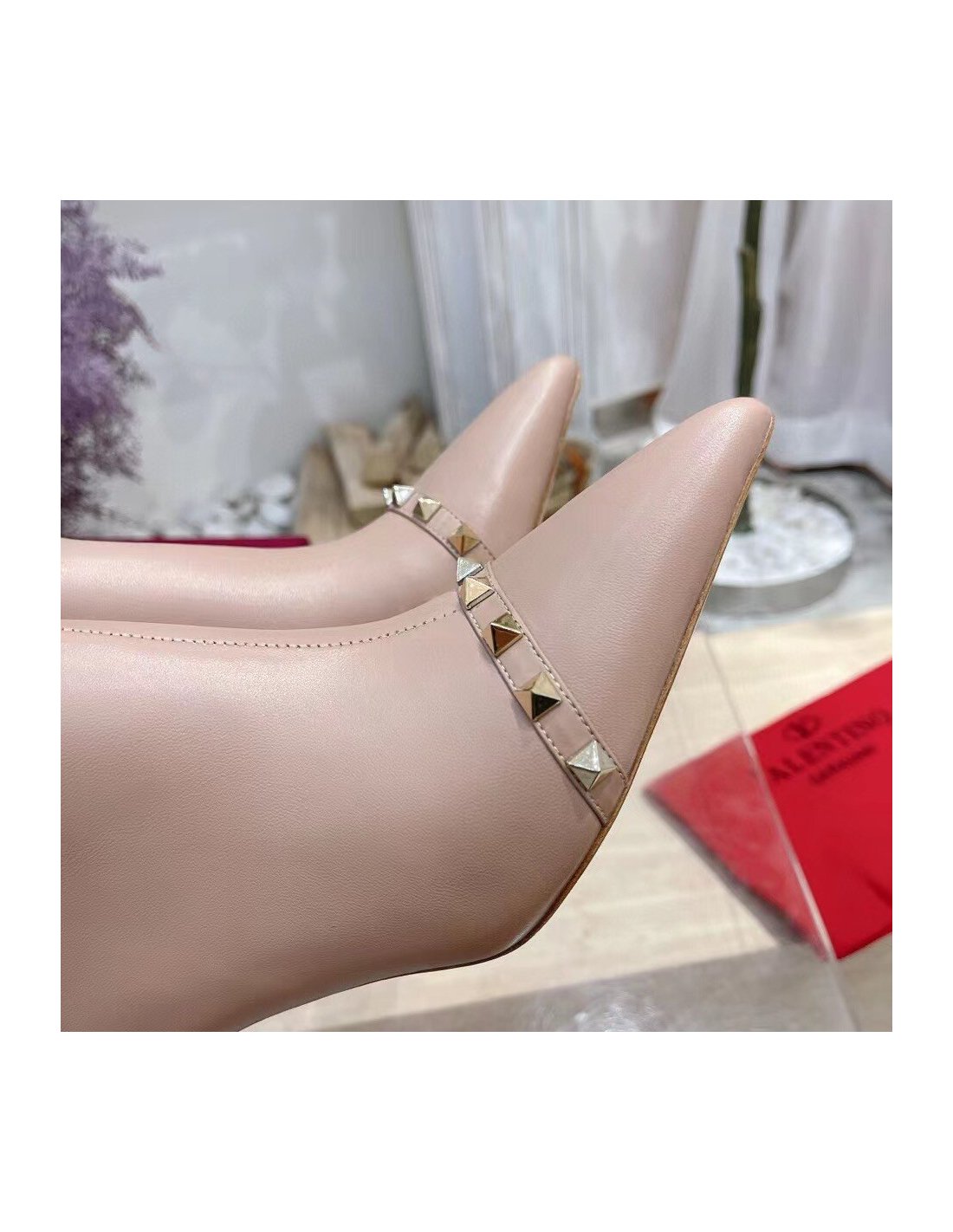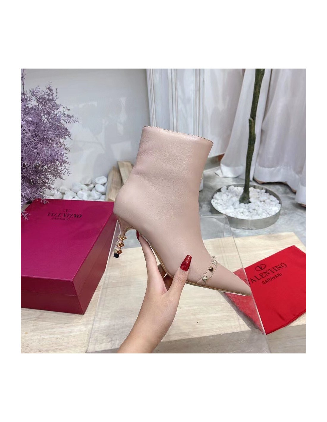 Cheap Reps Valentino Nude Rockstud Ankle Boots with Sculpted Heel