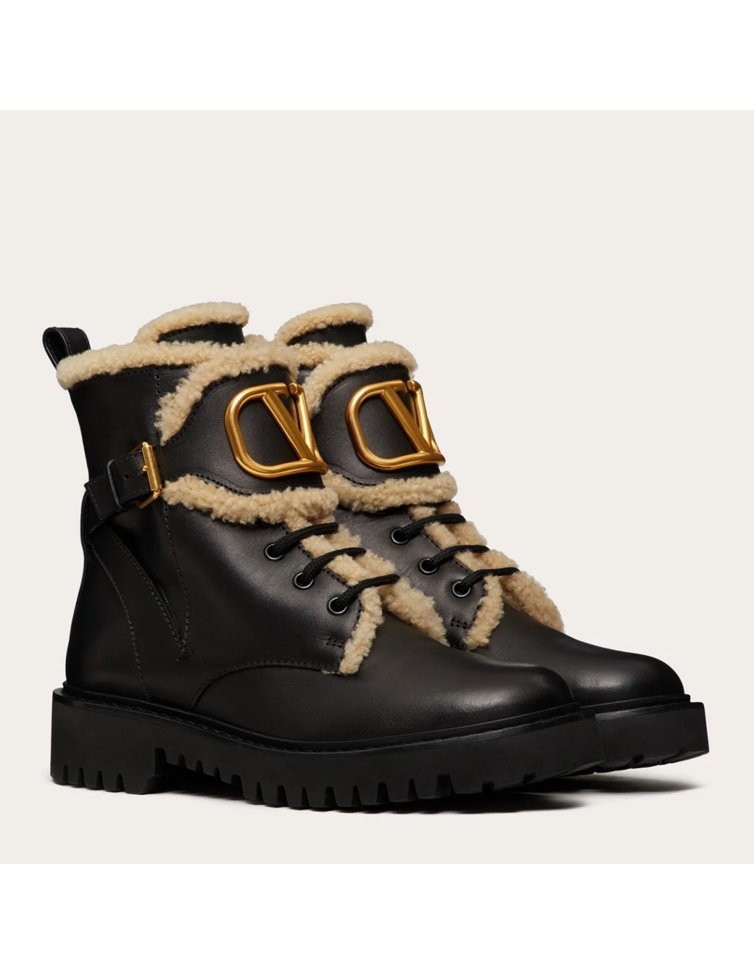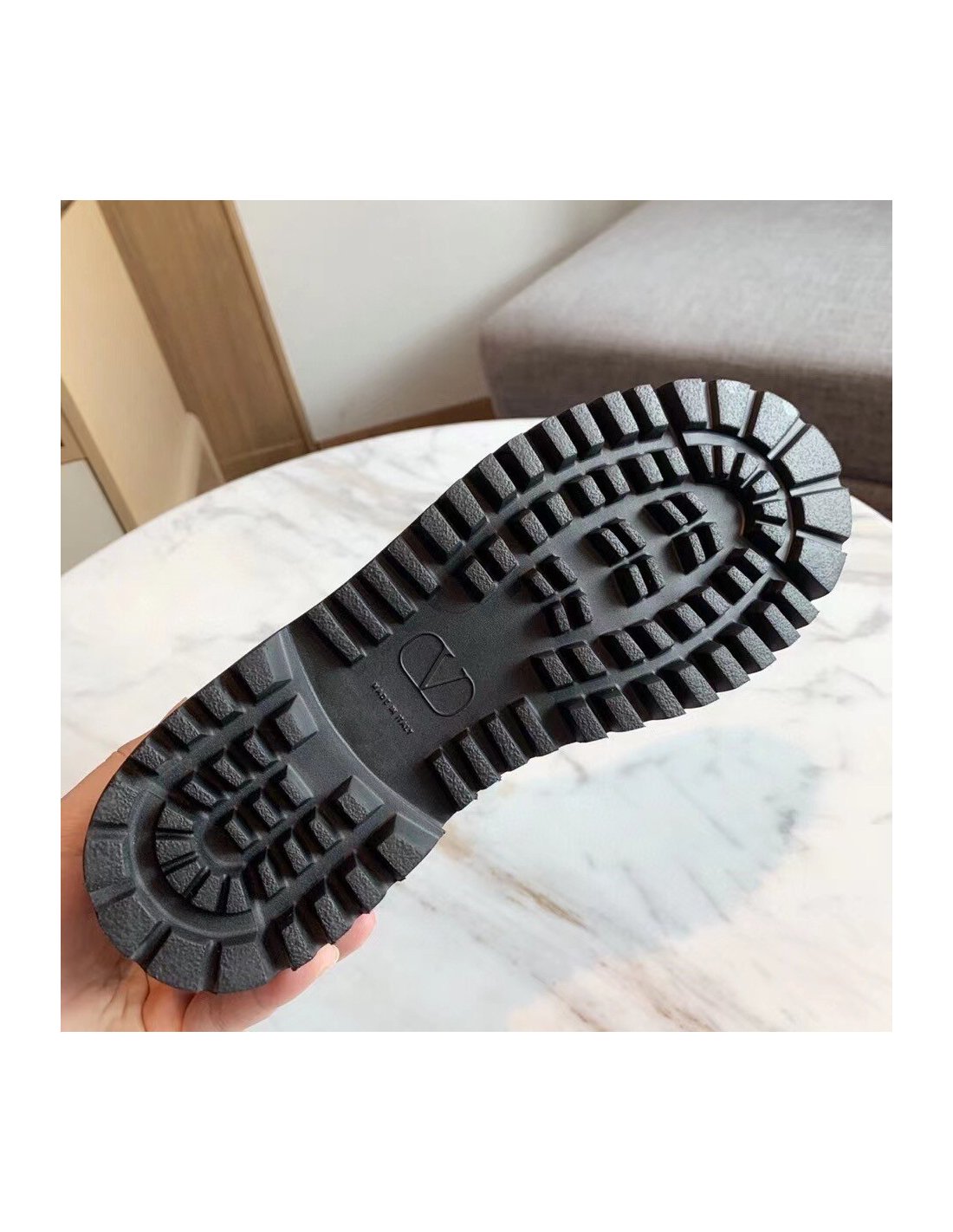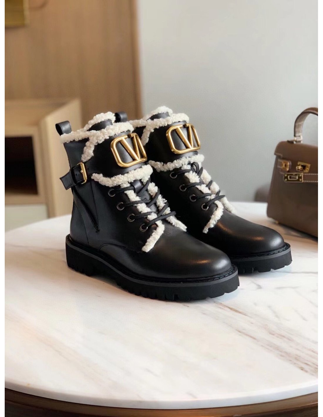 Valentino Vlogo Signature Combat Boots in Noir Toile Iconographe