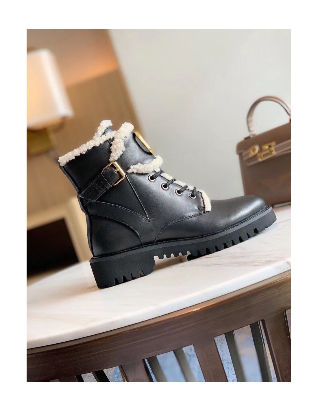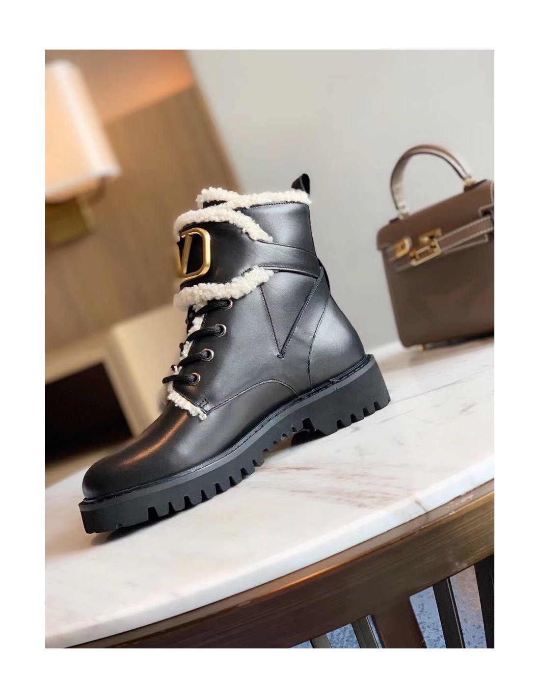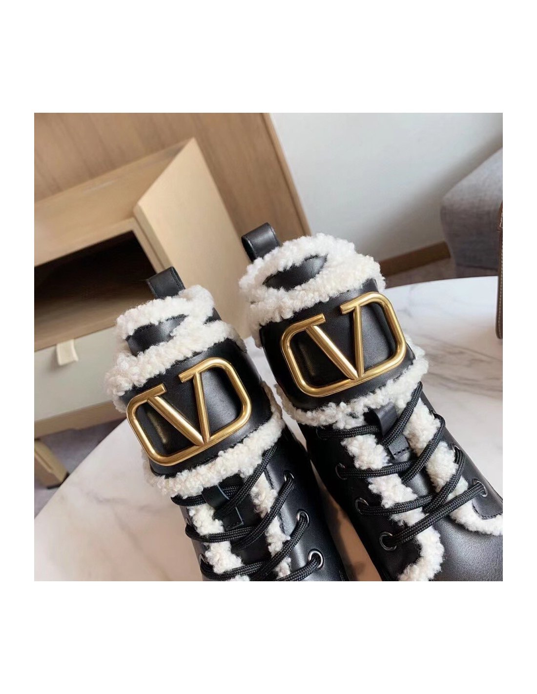 Valentino Vlogo Signature Combat Boots in Noir Toile Iconographe