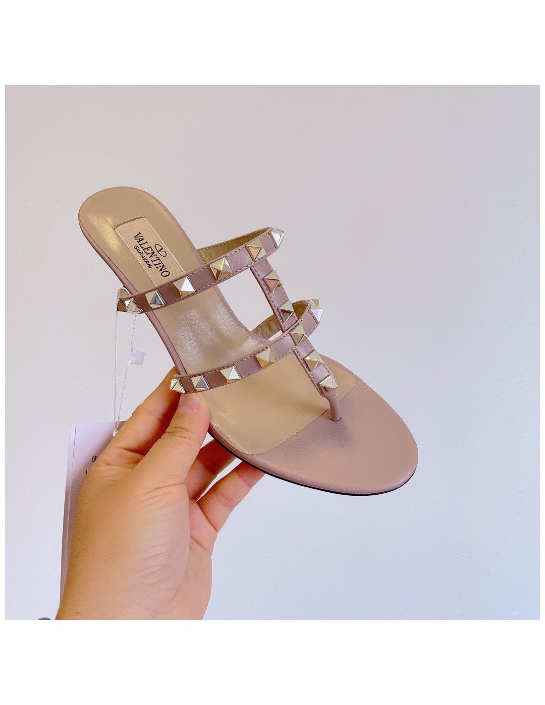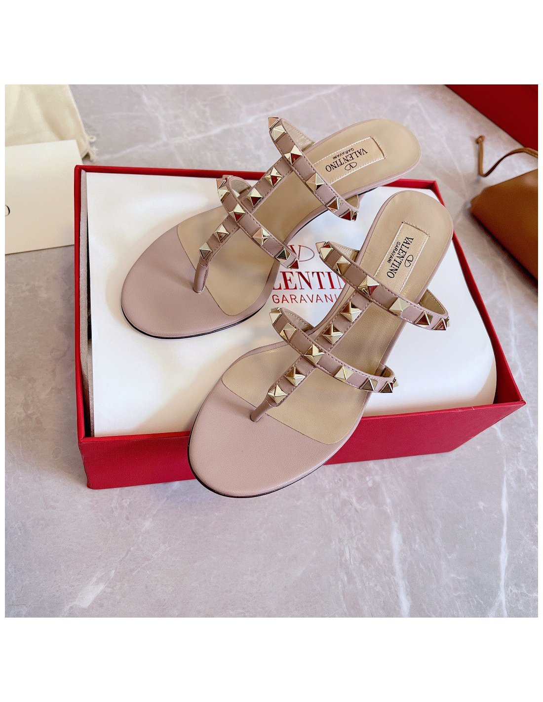 Valentino Rockstud Flip Flop Sandals 50mm In Poudre Calfskin