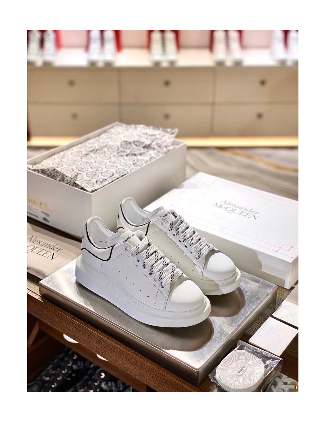 Alexander McQueen Womens White/Black Oversized Sneakers