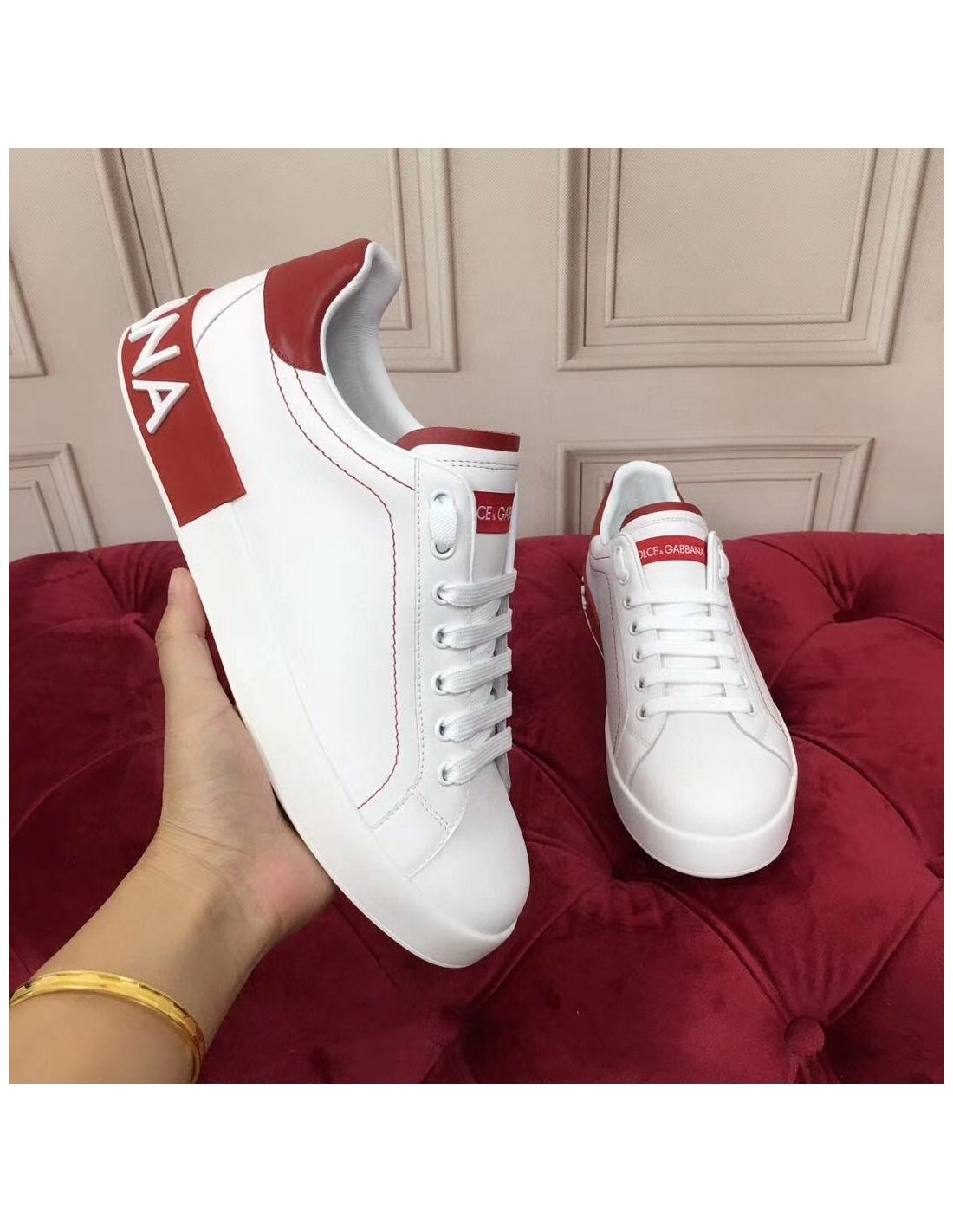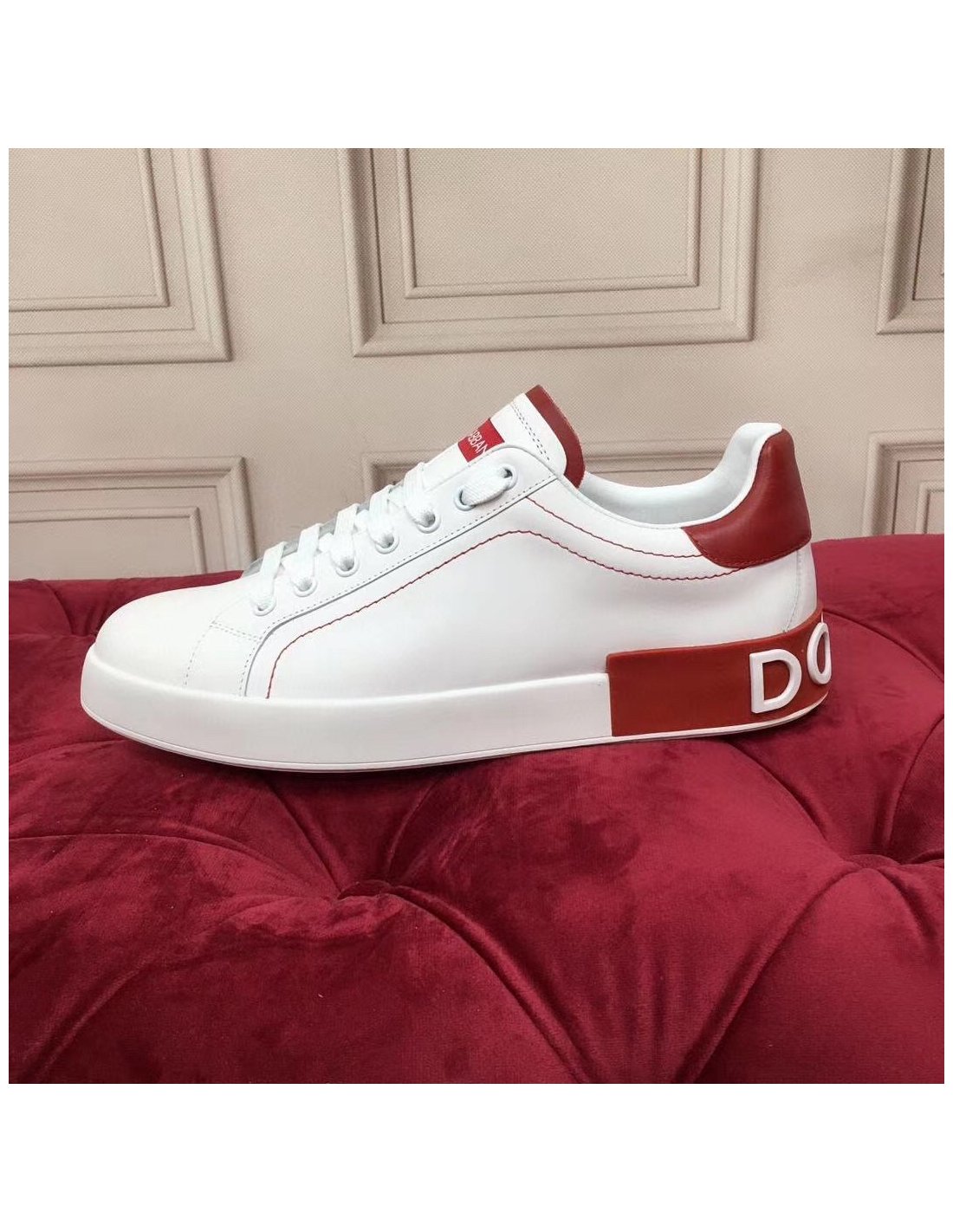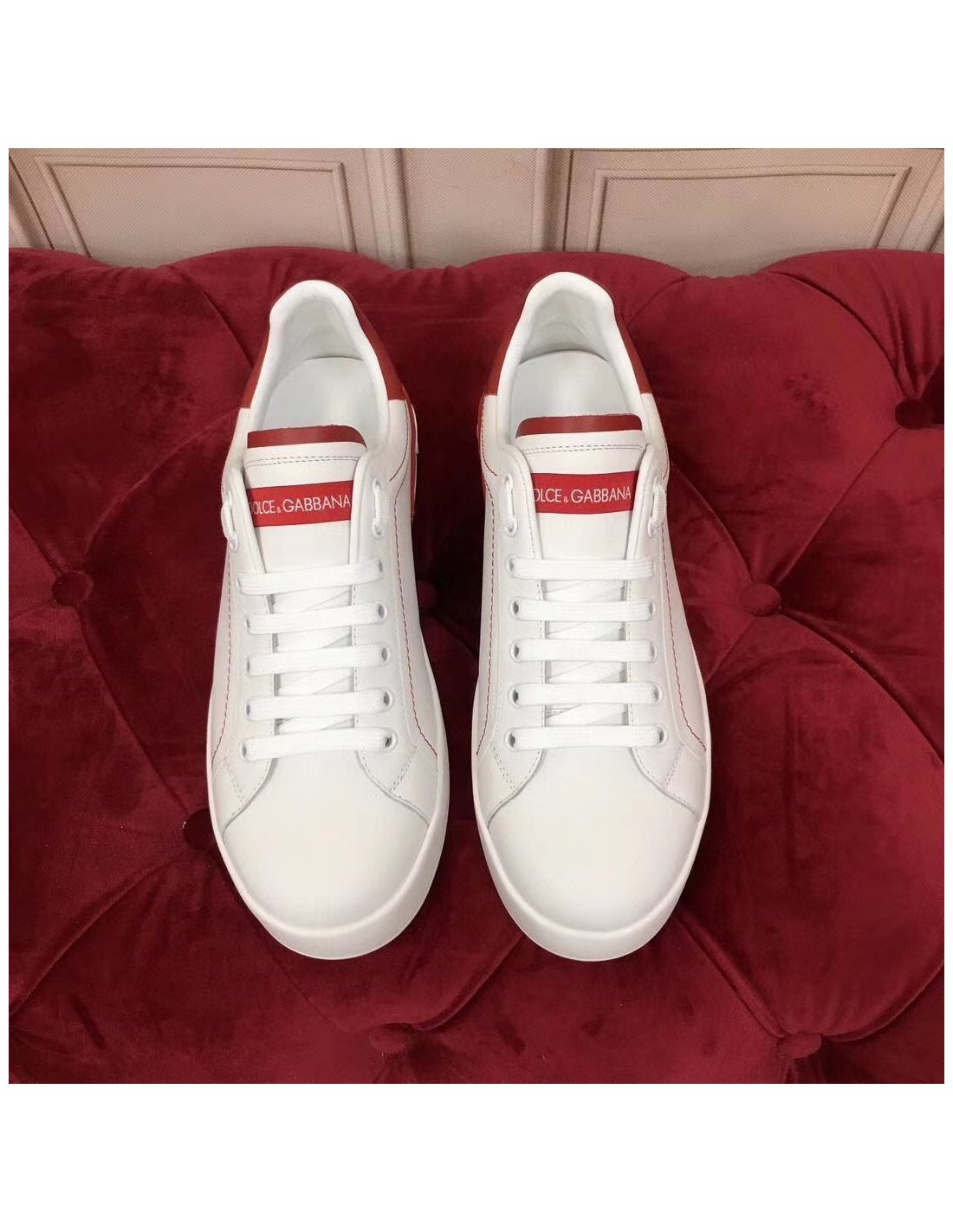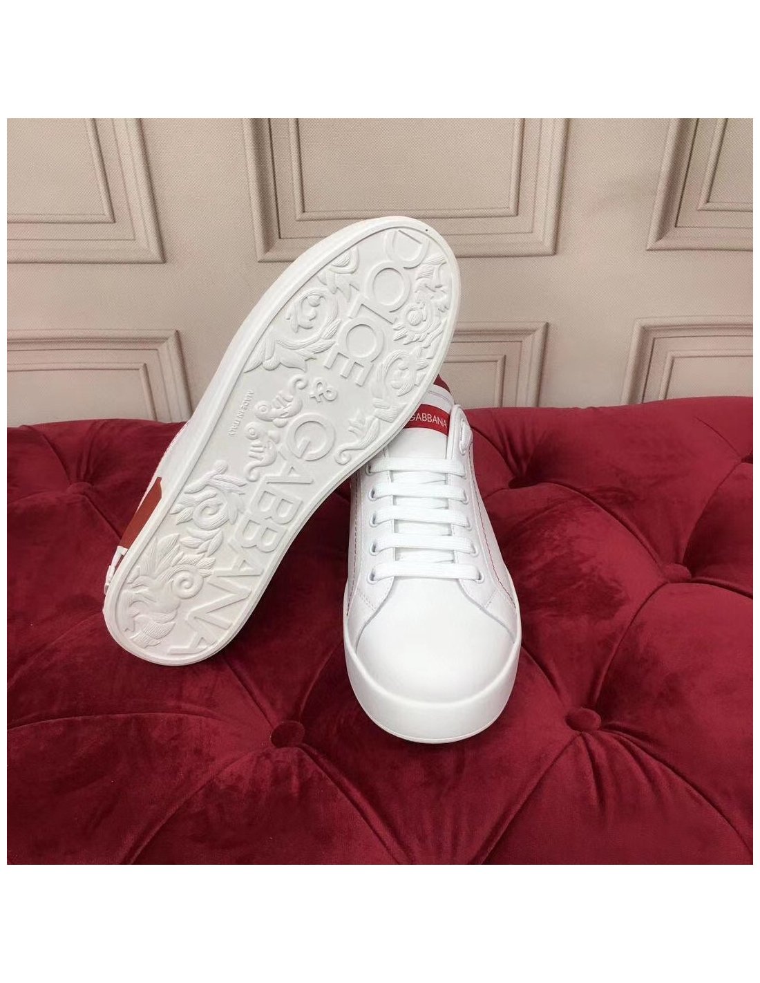 Dolce Gabbana Womens Portofino Sneakers with Red Branded