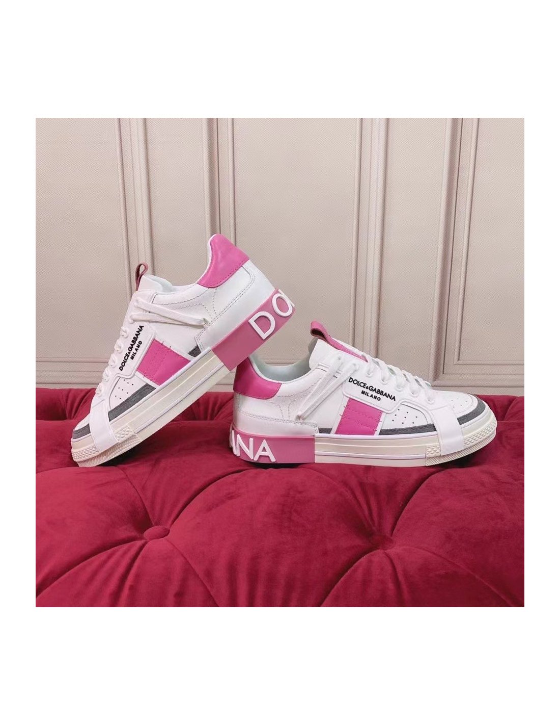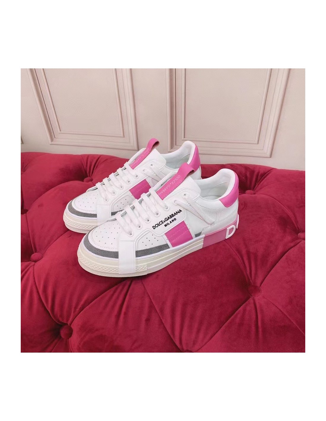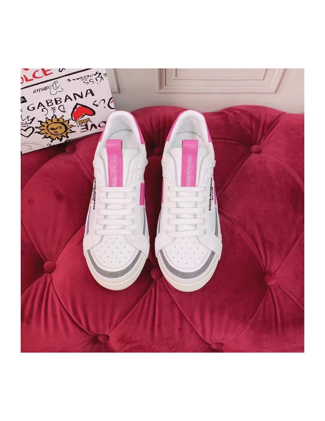 Dolce Gabbana Womens Portofino Sneakers with Pink Toe-cap