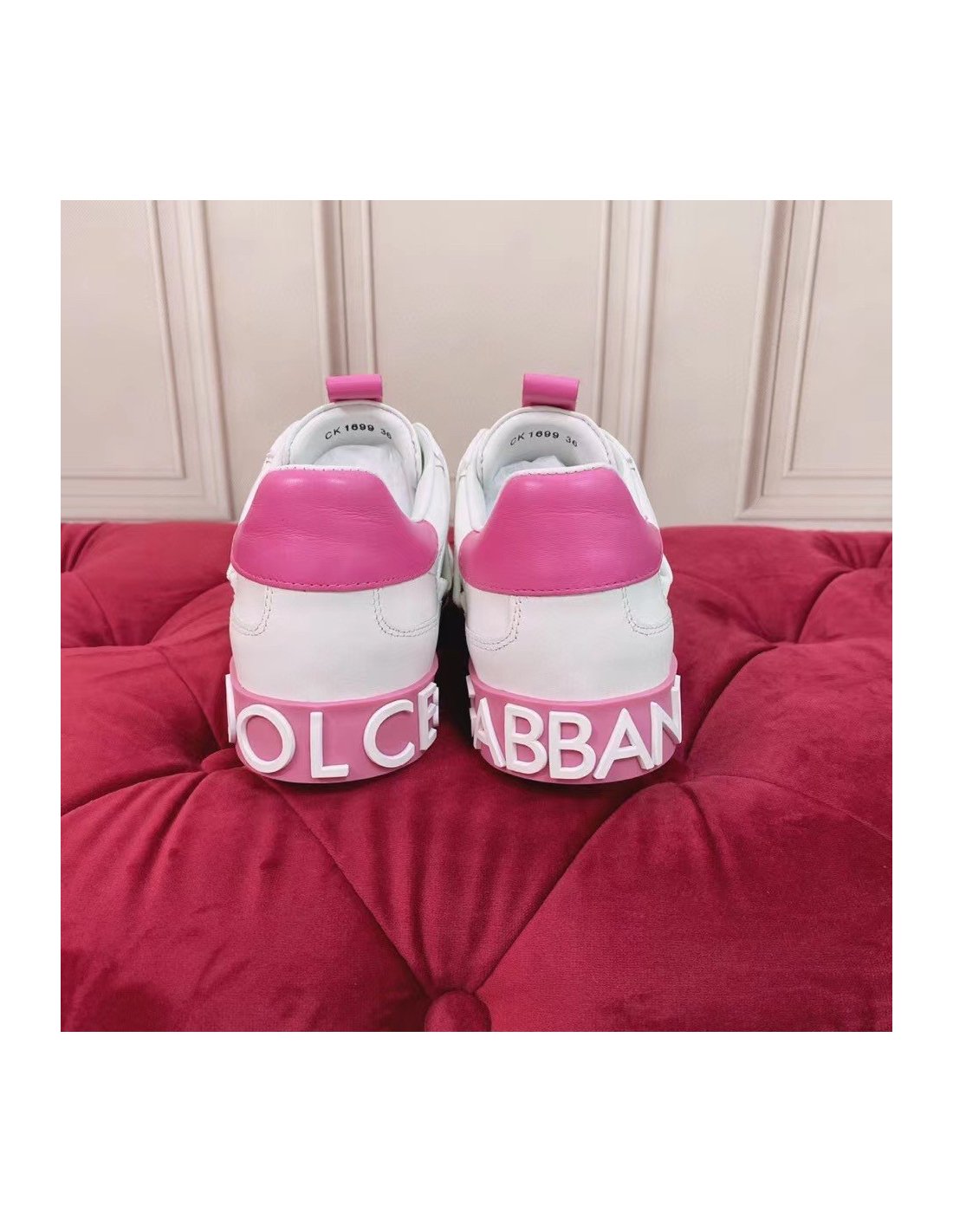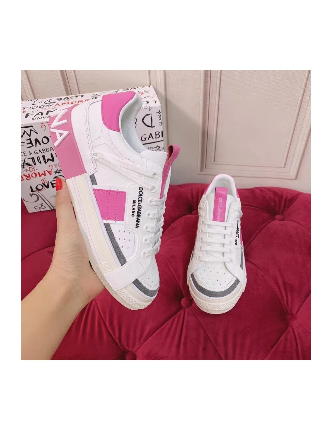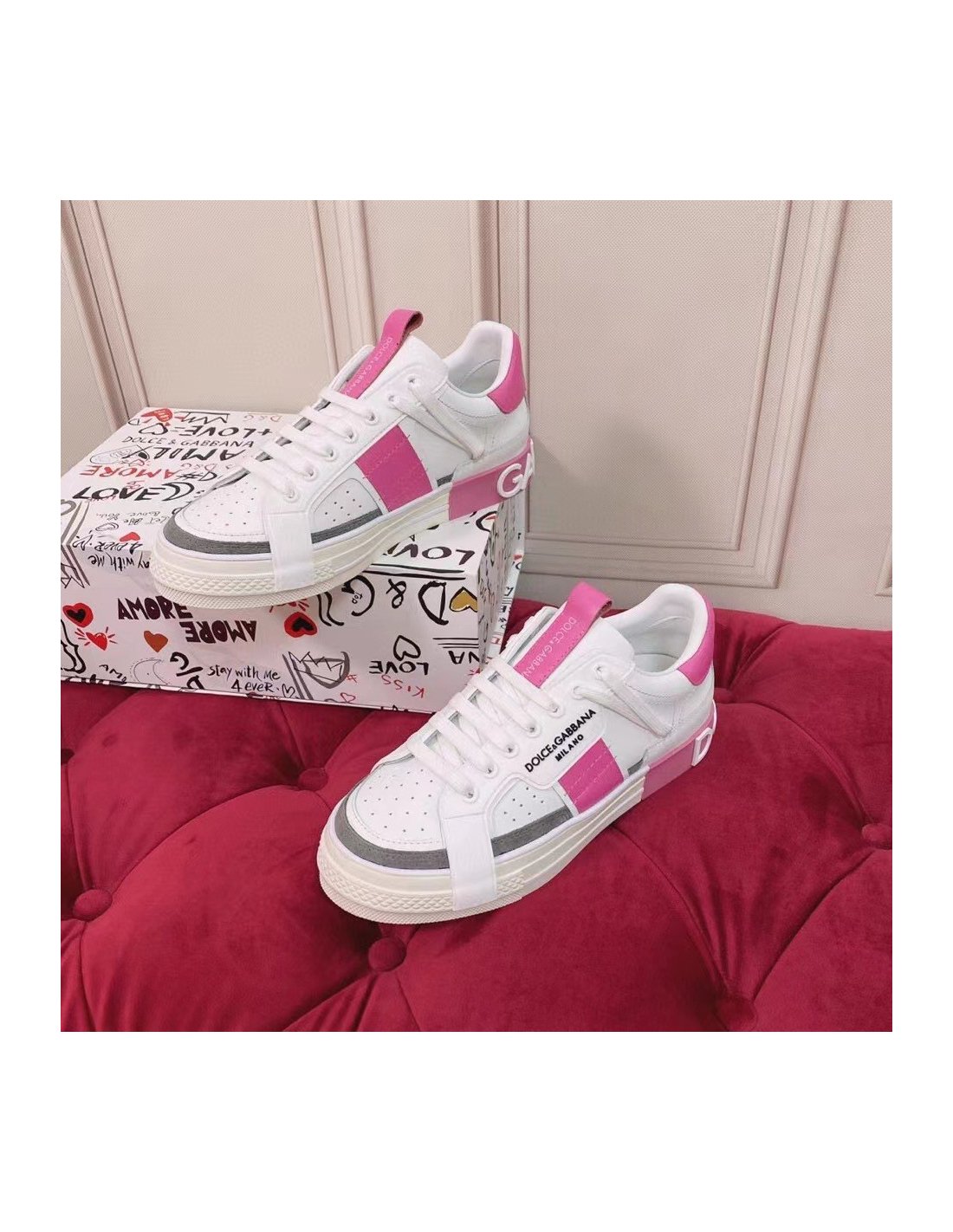Dolce Gabbana Womens Portofino Sneakers with Pink Toe-cap