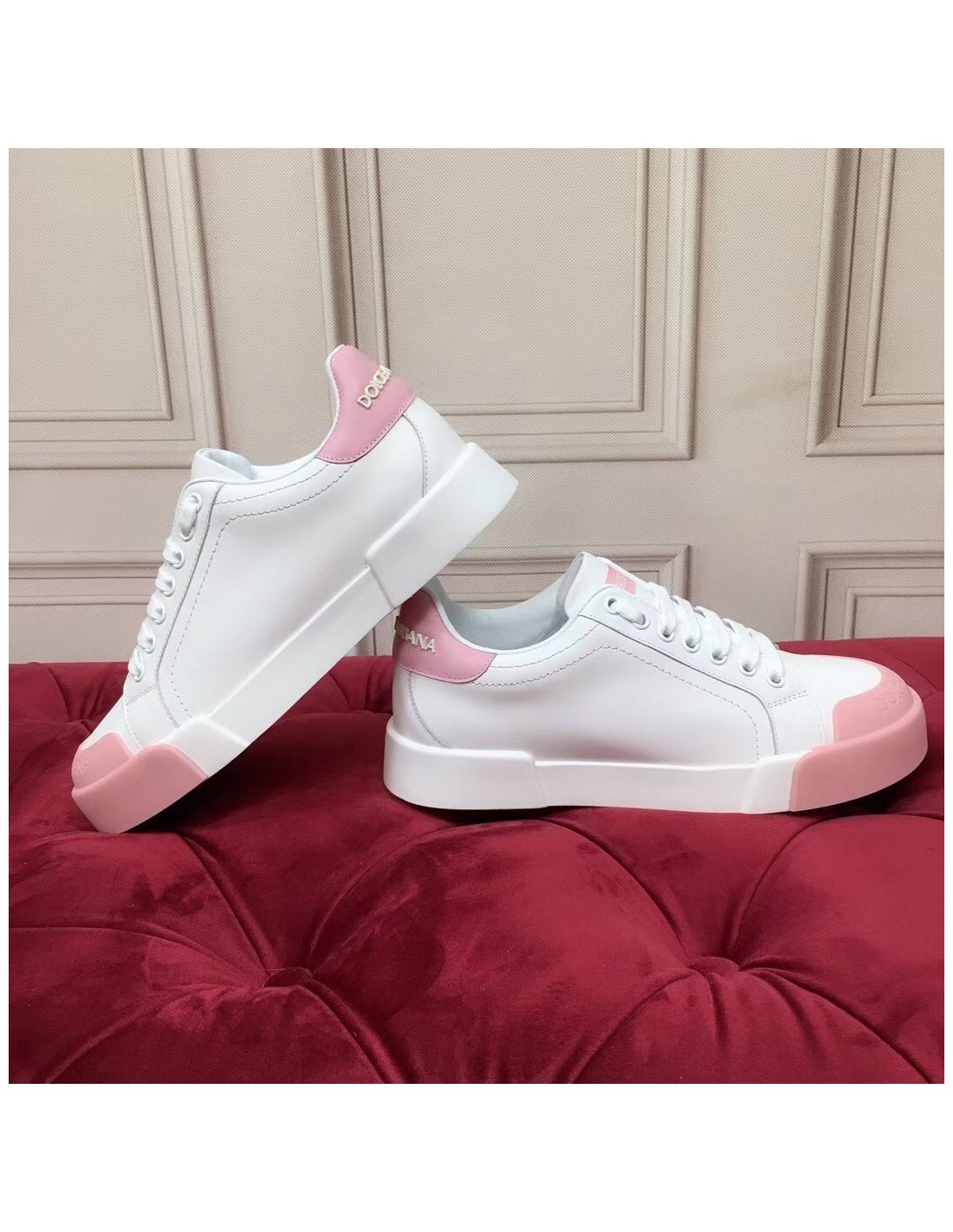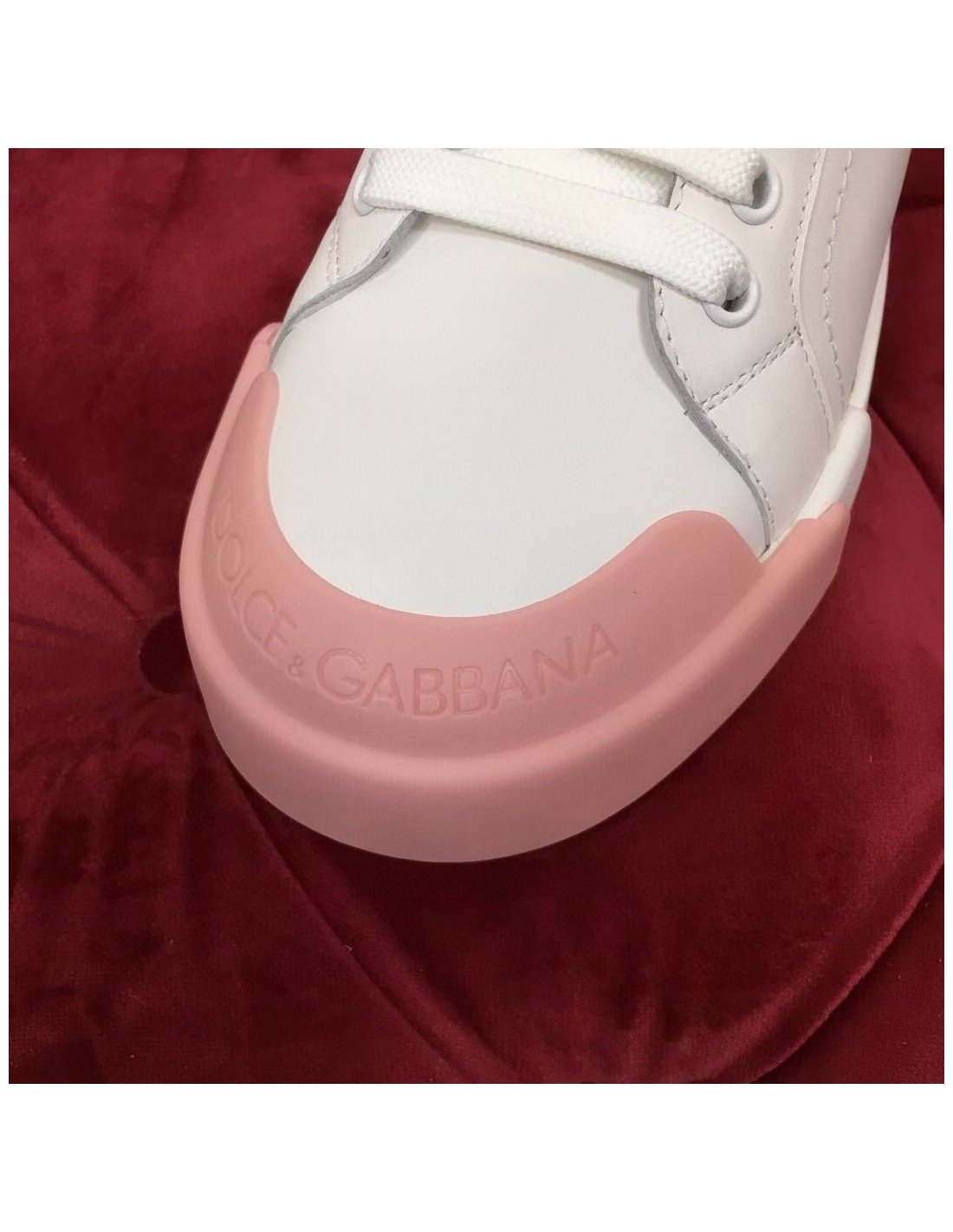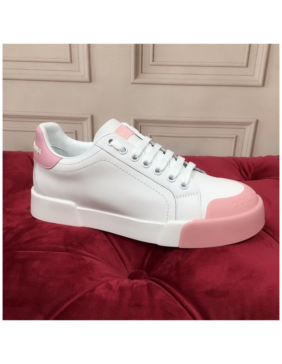 Dolce Gabbana Womens Portofino Sneakers with Pink Toe-cap