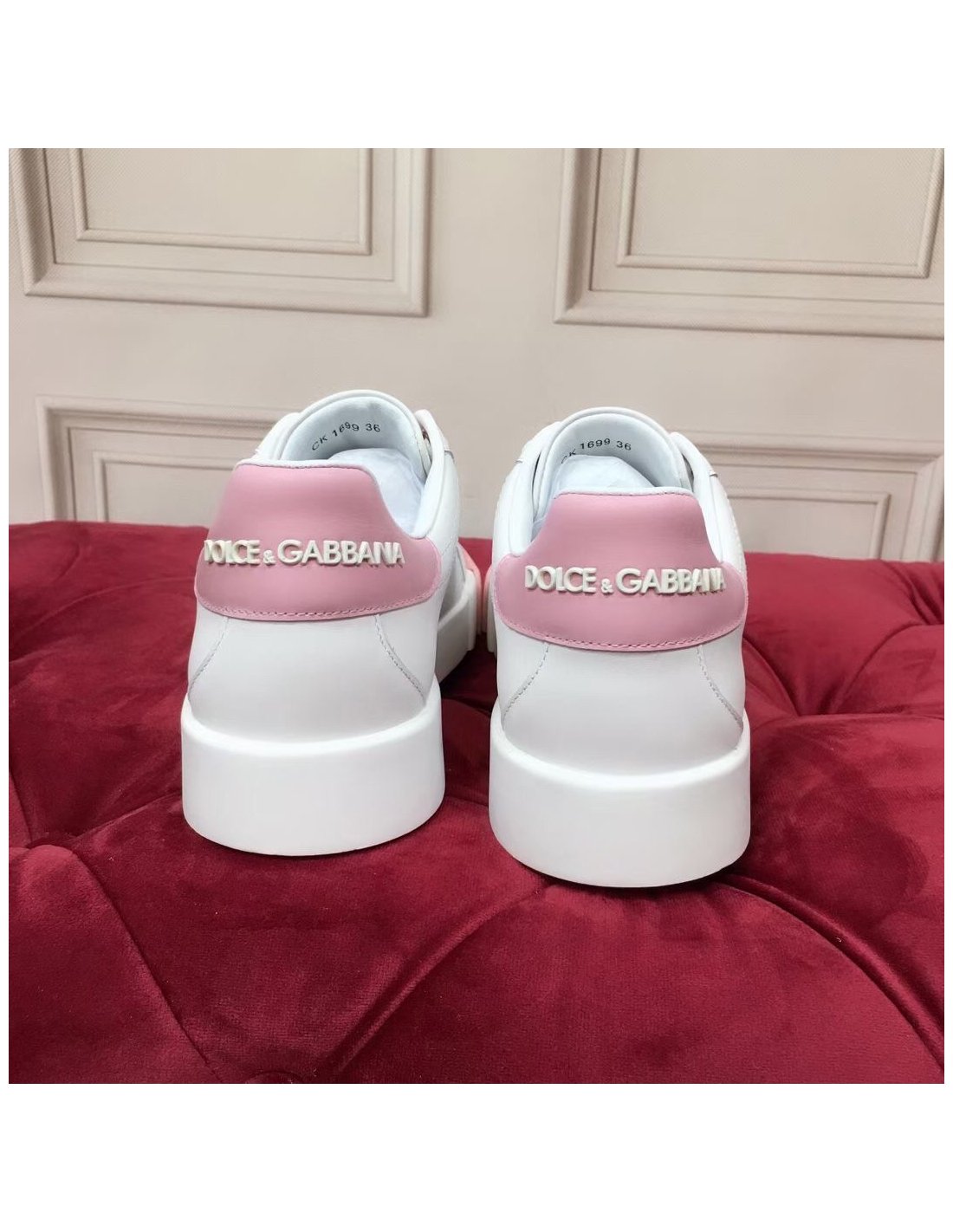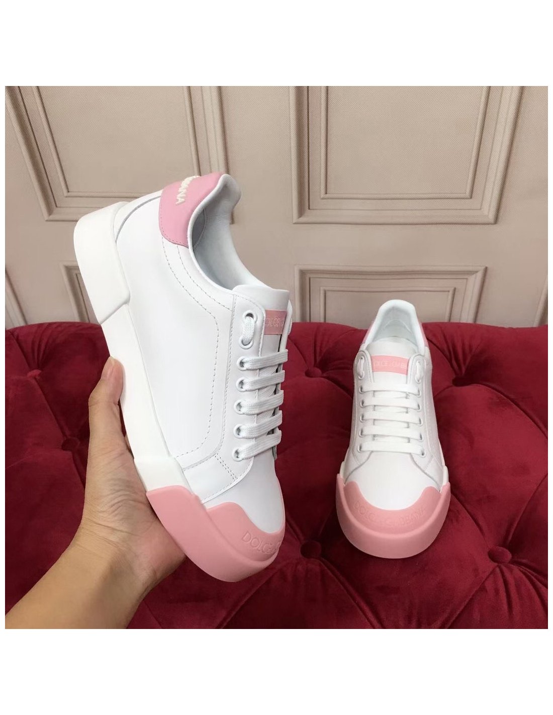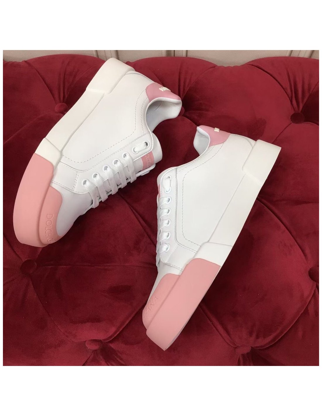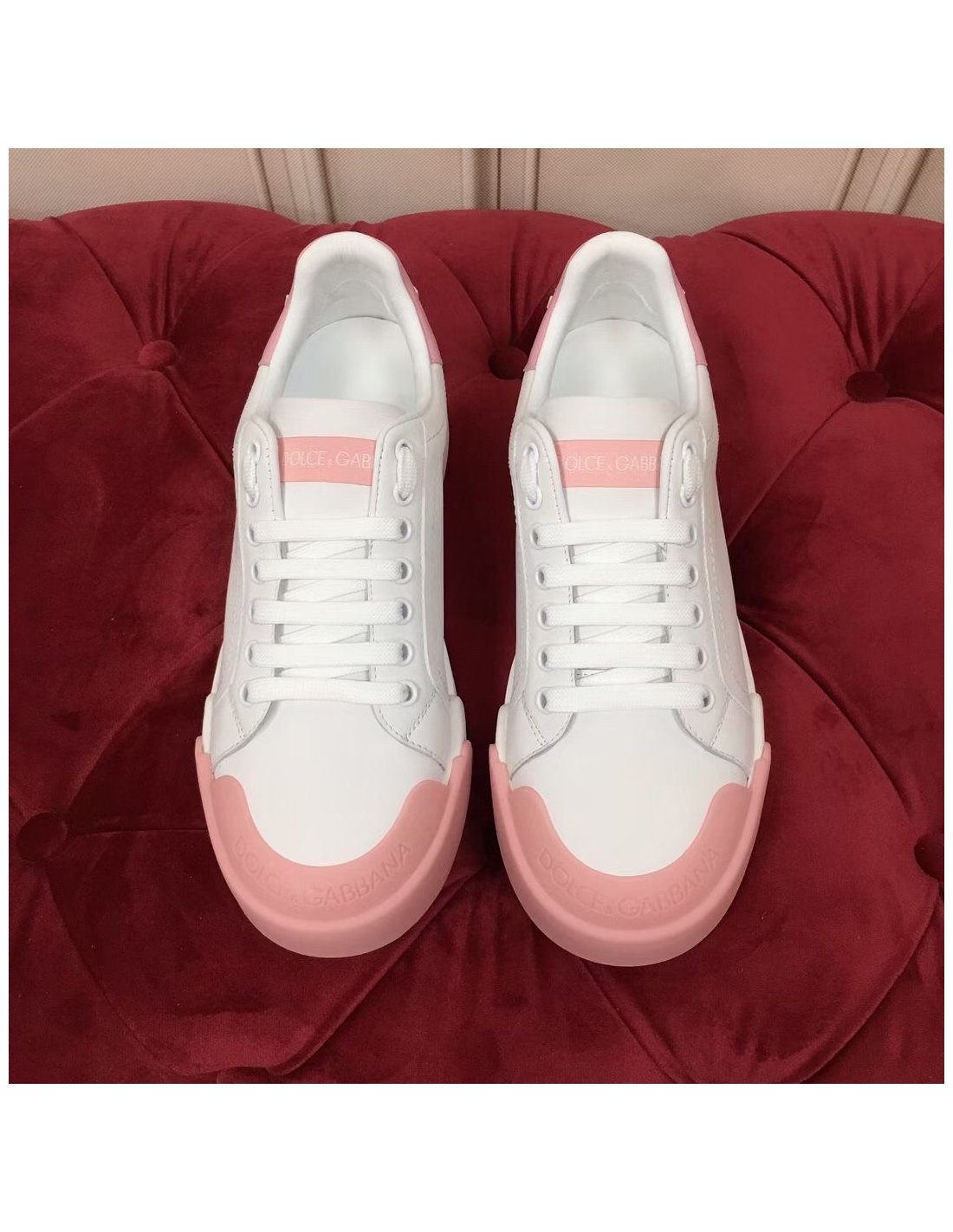 Dolce Gabbana Womens Portofino Sneakers with Pink Toe-cap