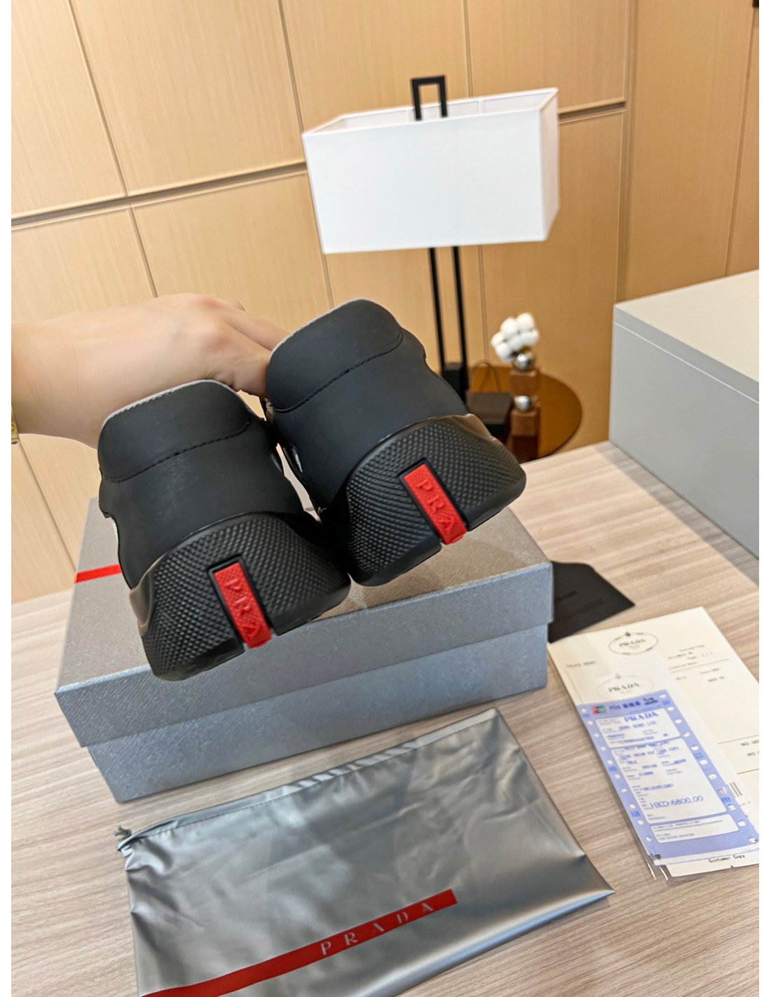 - Prada Linea Rossa latex logo badge
